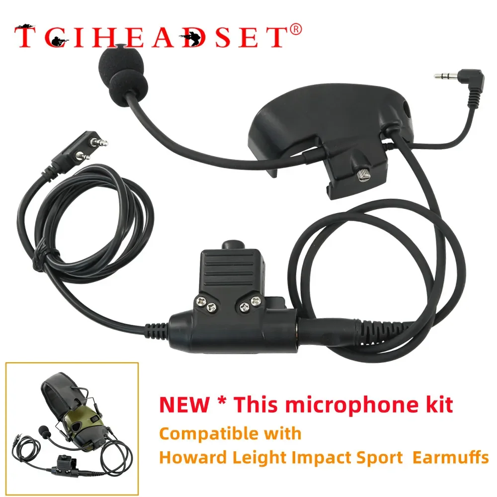Kit de micrófono y auriculares tácticos con U94 PTT para Howard Leight Impact, auriculares deportivos para disparar U94 PTT Ken de 2 pines para Baofeng
