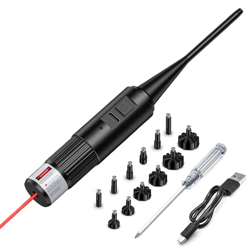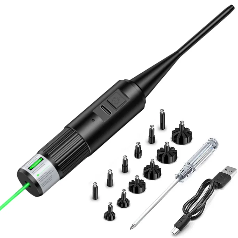 Kit de MIRA LÁSER recargable con 12 adaptadores, colimador láser brillante rojo o verde, 0,17 a 12GA