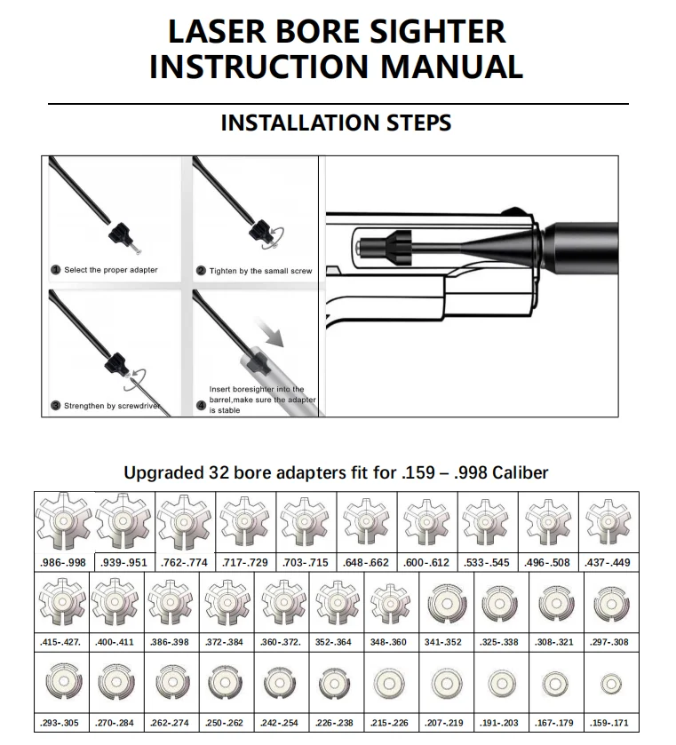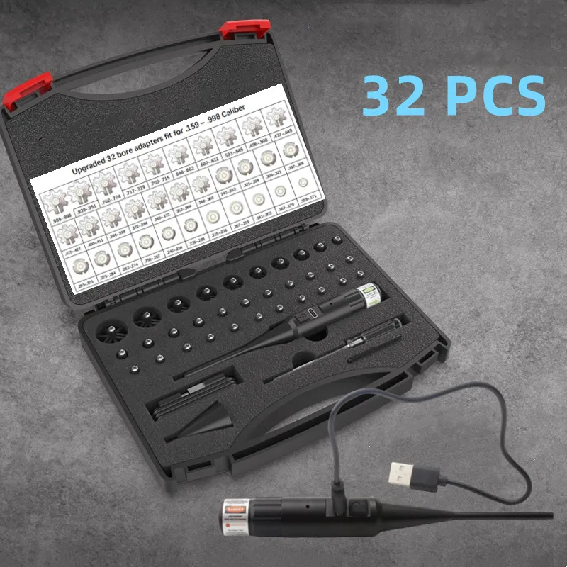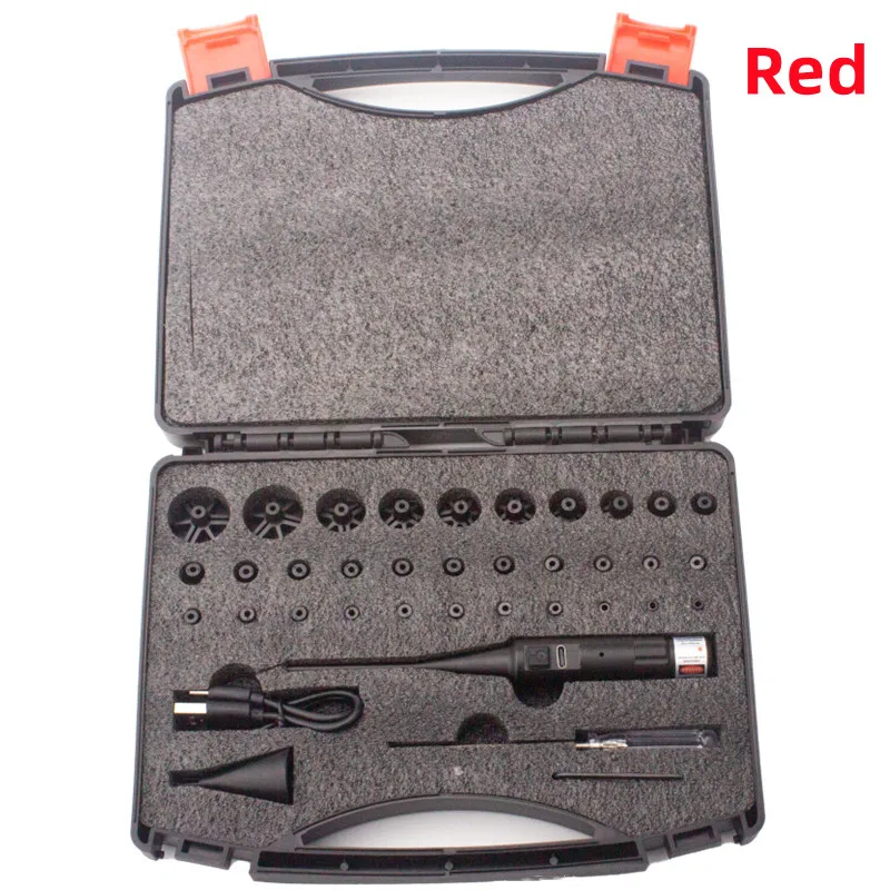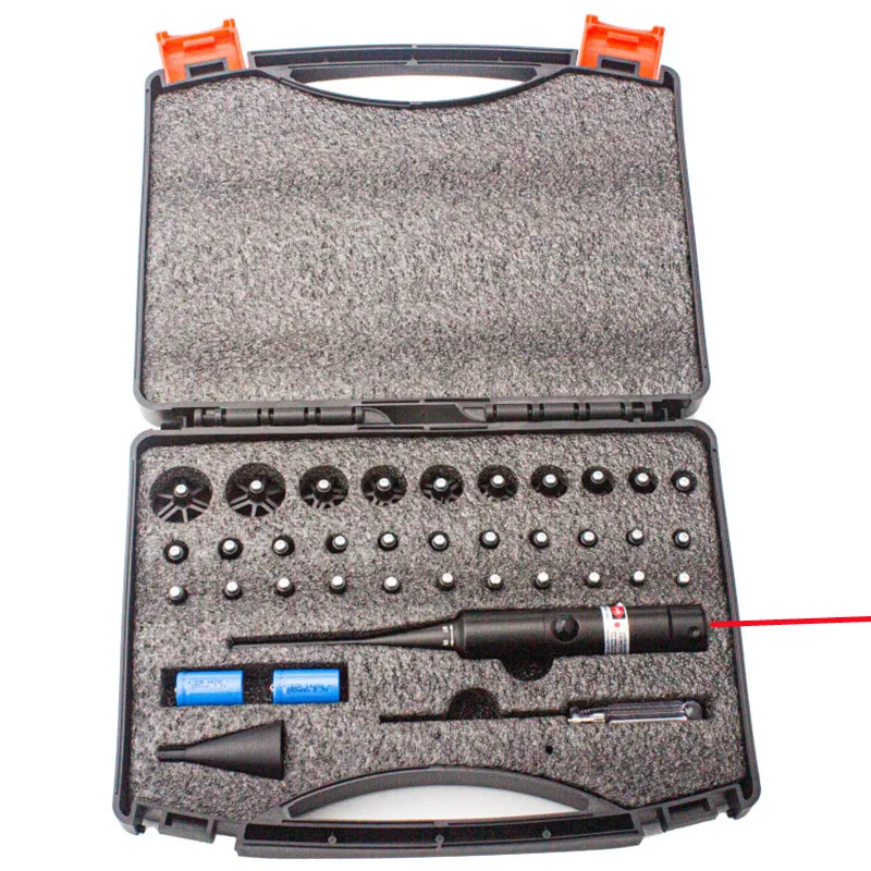 Kit de mira de orificio láser rojo con 32 adaptadores compatibles con calibre múltiple de 0,17 a 12GA Cal para colimador láser de caza
