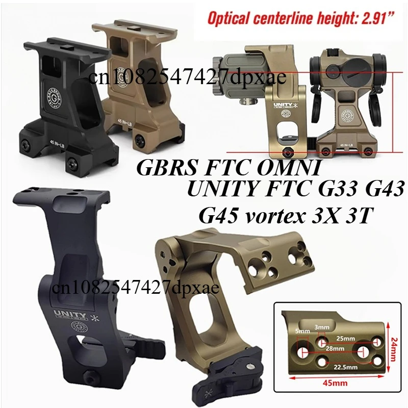 Altura de la línea central óptica de 2,91", hecha de aluminio 6061-T6, revestimiento duro tipo 3 Clase 2 con acabado anodizado (negro o FDE)