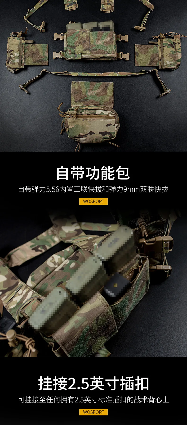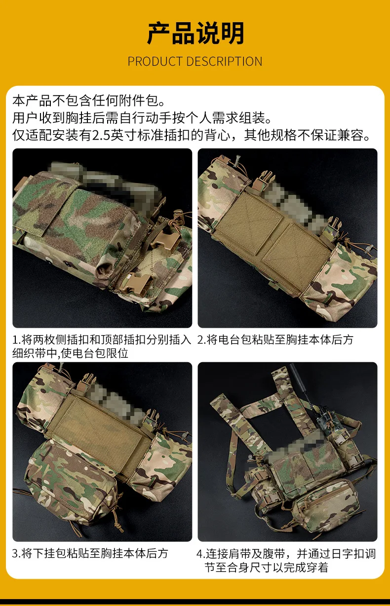 Kit de montaje de pecho táctico multifuncional para caza, bolsa de almacenamiento grande Modular, camuflaje, MK3