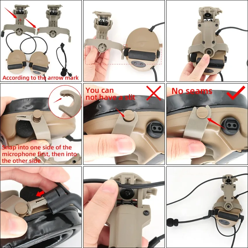 Kit de montaje de riel de soporte para casco táctico, adaptador de riel de arco para auriculares tácticos COMTA II COMTA III, auriculares de tiro Airsoft