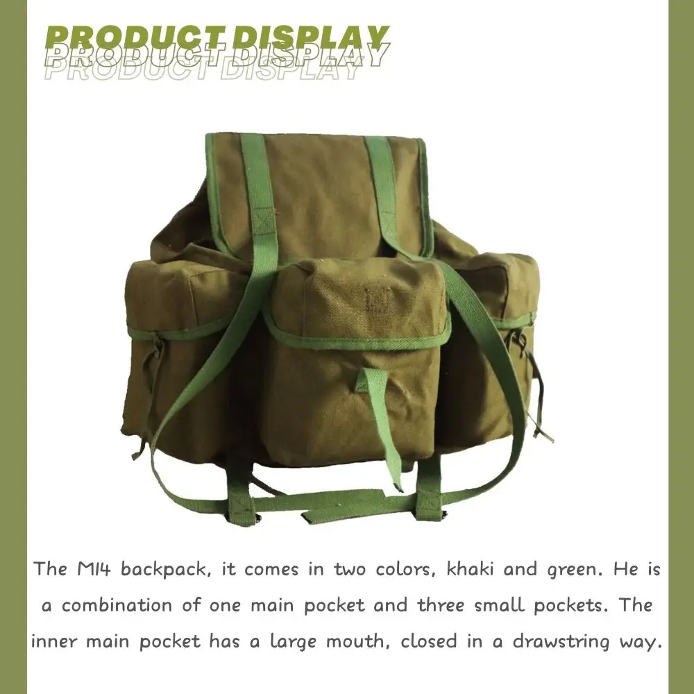 La mochila es una bolsa de almacenamiento militar de EE. UU. durante la Segunda Guerra Mundial.La mochila principalmente el espacio de almacenamiento es grande y hay tres grandes almacenes de almacenamiento, que pueden almacenar muchos suministros necesarios, pero también pueden hacer una partición que no afectarán el almacenamiento de otros artículos.
