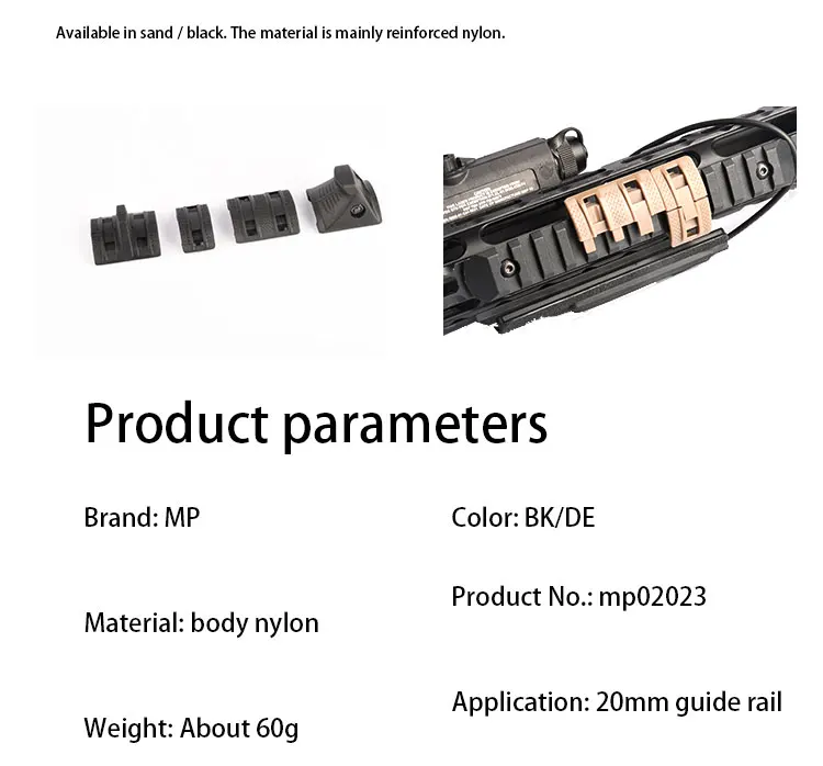 Este kit es compatible con cubiertas de riel Picatinny de 20 mm, lo que lo hace versátil para varias pistolas de juguete de airsoft.