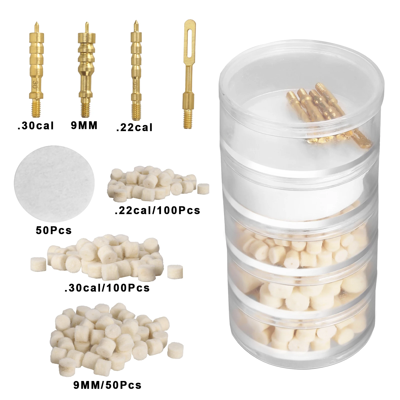 • Capa 5: pasador de empuje de cobre y latón universal*1.22cal*1,.30cales*1, 9mm*1