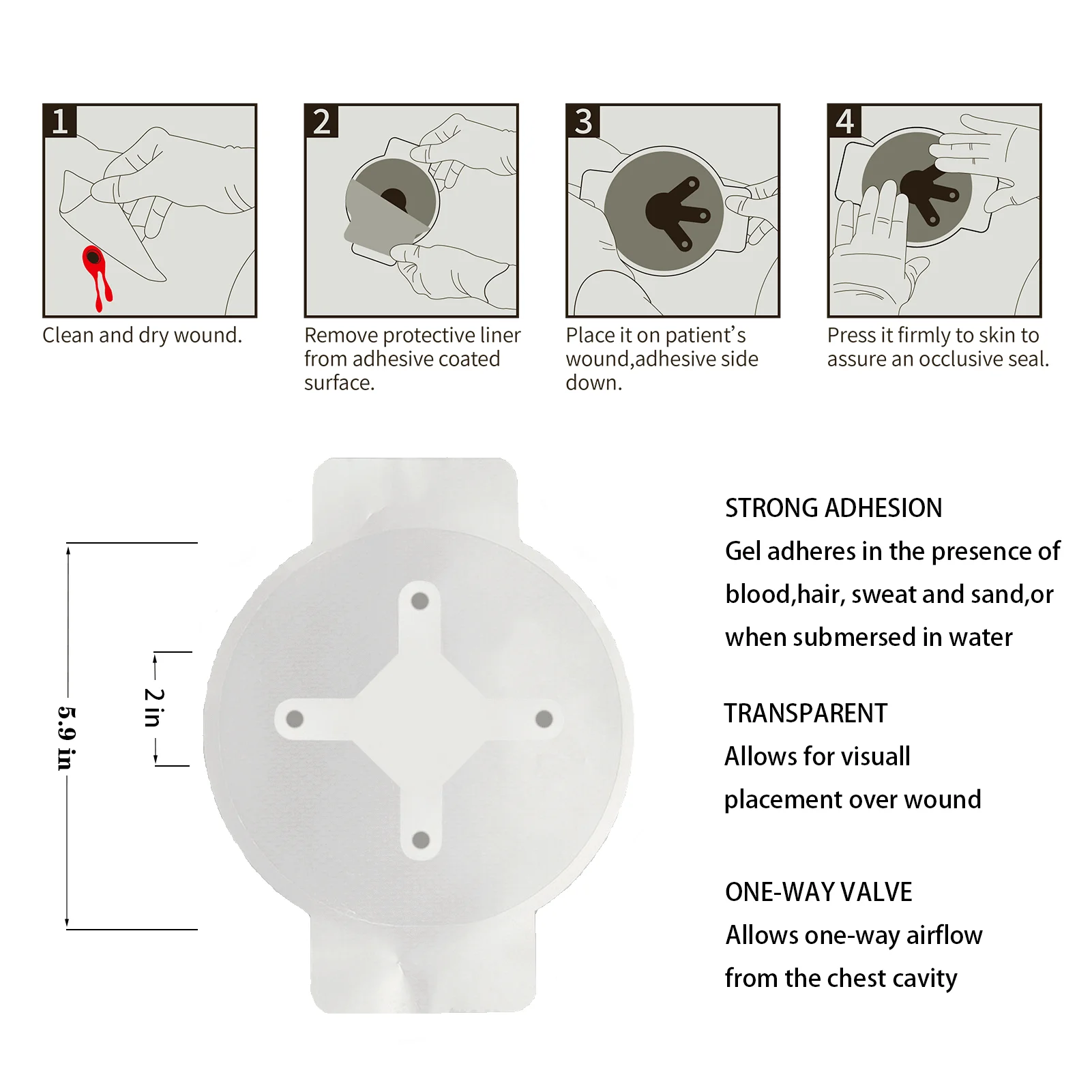 Chest Seal es un vendaje oclusivo avanzado diseñado para tratar heridas al pecho abiertas.Penetrar lesiones en el tórax que provocan heridas abiertas en el tórax puede provocar un neumotórax por tensión, la segunda causa principal de la muerte preventable en el campo de batalla.Los sellos para el pecho están diseñados específicamente con un adhesivo de hidrogel de grado médico lo suficientemente fuerte como para adherirse a la piel expuesta a la sangre, el sudor, el cabello, la arena o el agua.