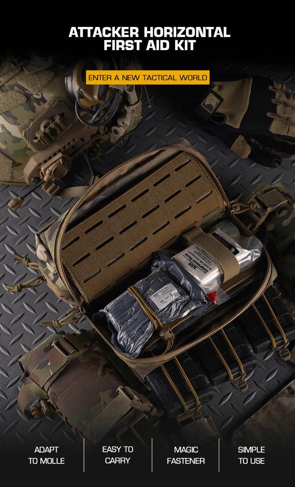 Kit de primeros auxilios táctico Attacker, implementación rápida horizontal, caza al aire libre, entrenamiento de combate, bolsa médica, equipo de cinturón MOLLE