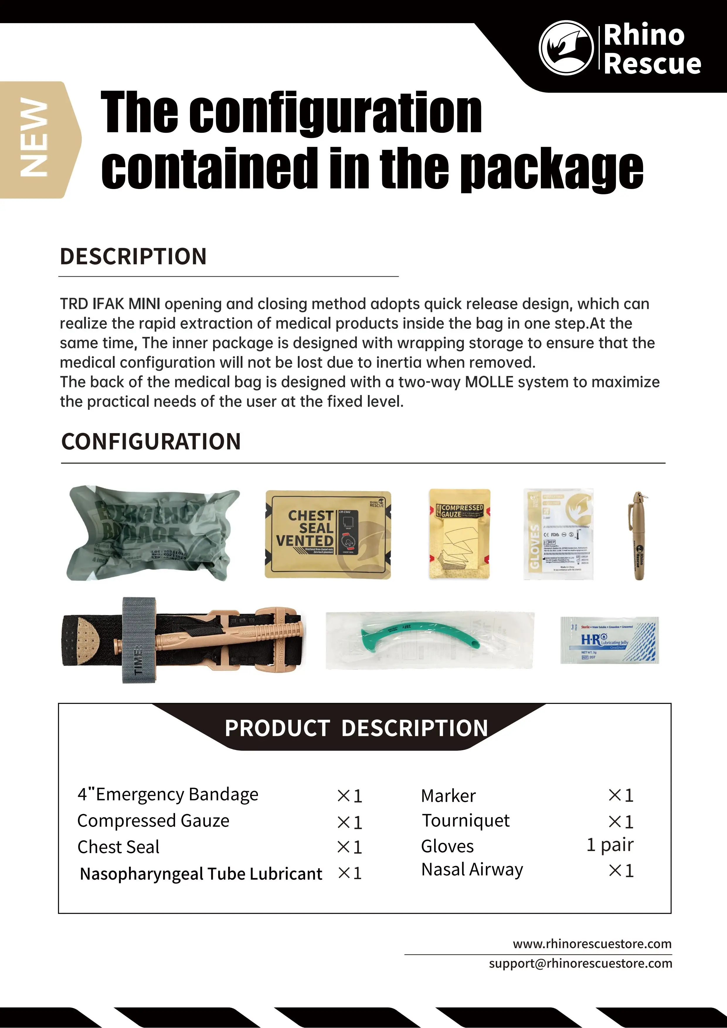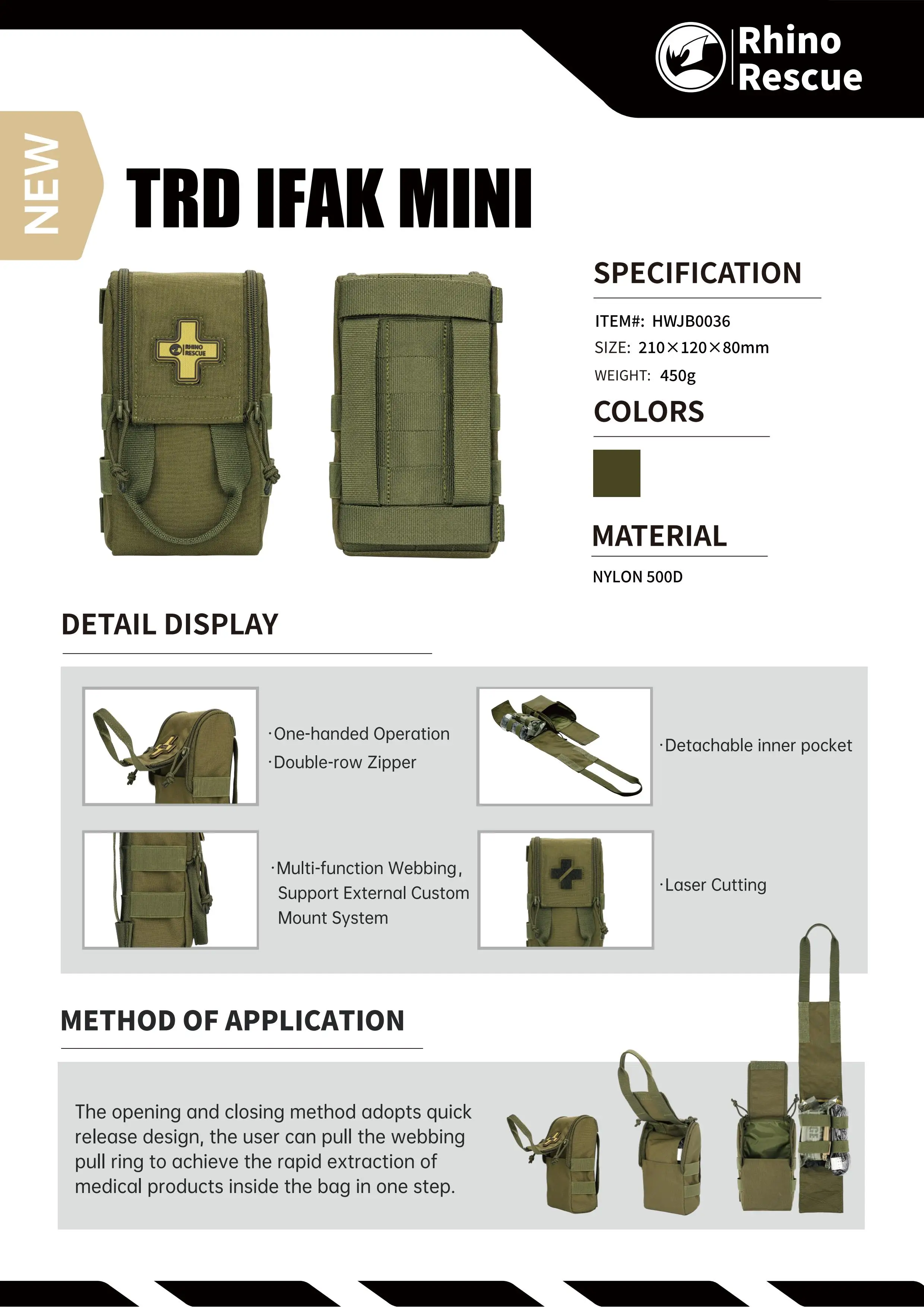 Kit de primeros auxilios táctico Rhino Rescue-TRD-MINI, EDC, Trauma de emergencia, IFAK, riñonera de cintura para Camping, senderismo