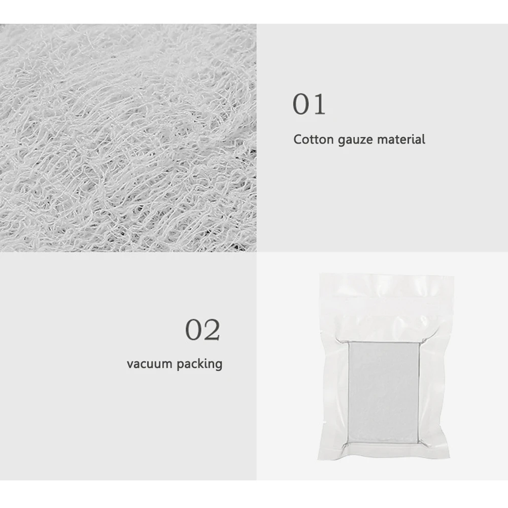 Gasa de algodón puro, superabsorbente, con muchos huecos entre las fibras para lograr una rápida absorción de agua.