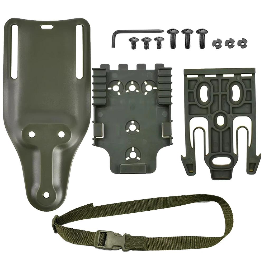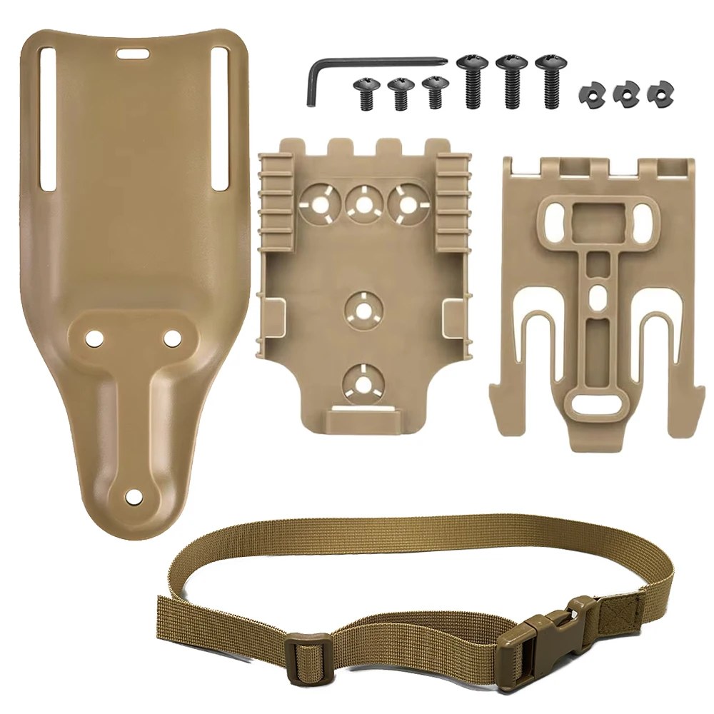 Sistema de bloqueo rápido: El QLS permite una transferencia rápida de equipo entre puntos de fijación.Como presilla para cinturón, chaleco táctico Molle, cubierta táctica para las piernas u otra plataforma.La combinación de horquilla y placa QLS pasa la prueba de tracción de retención de nivel I.