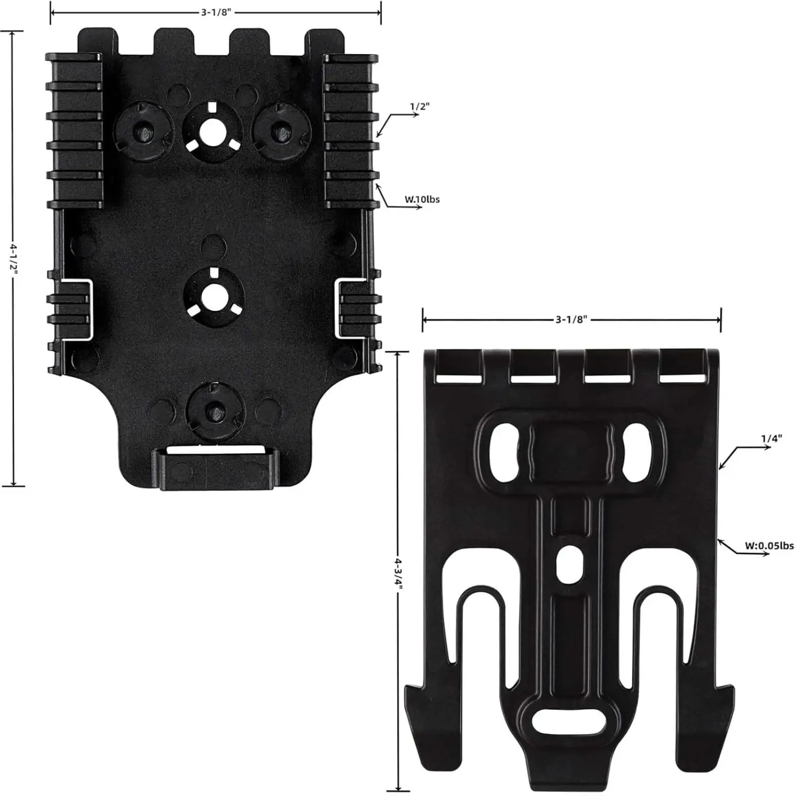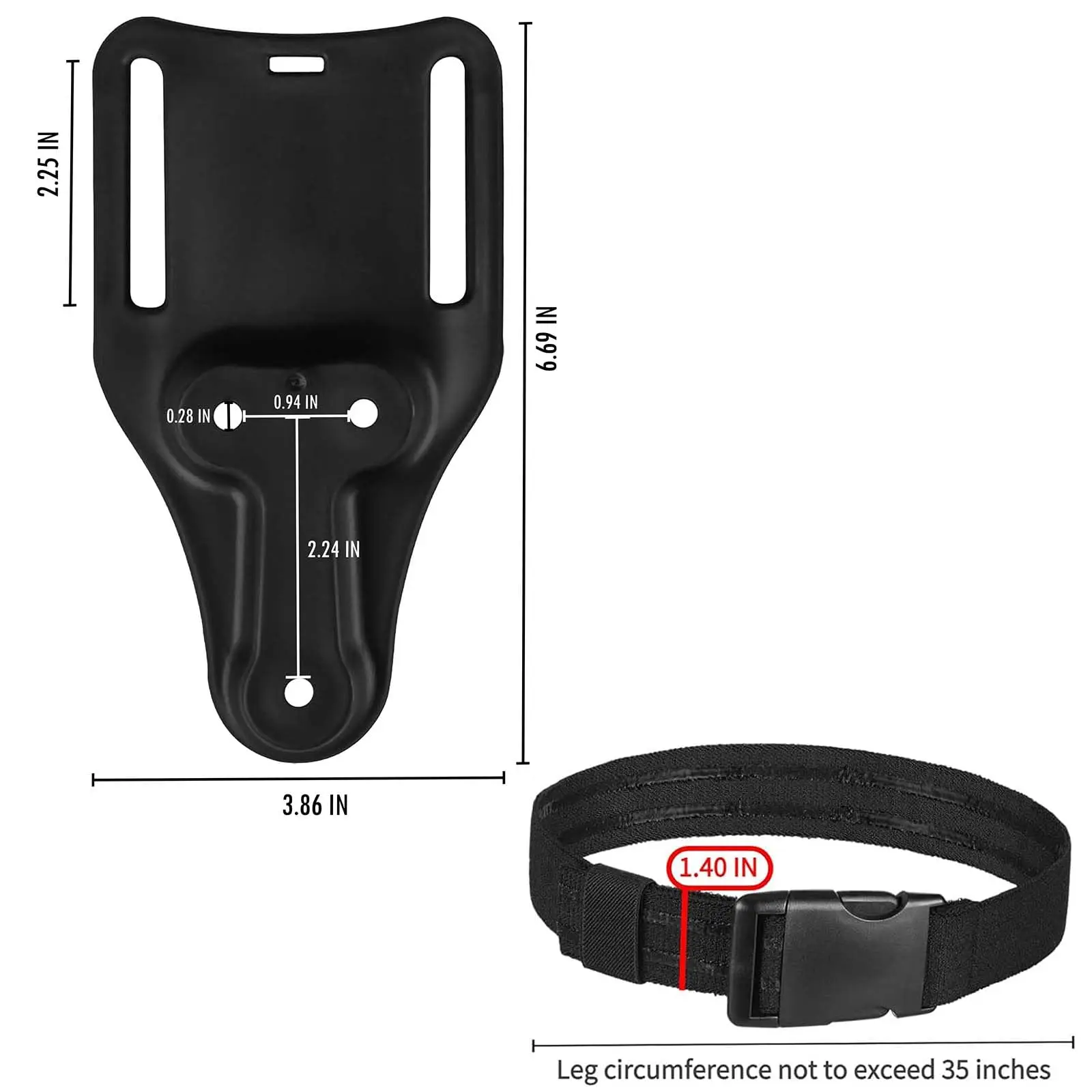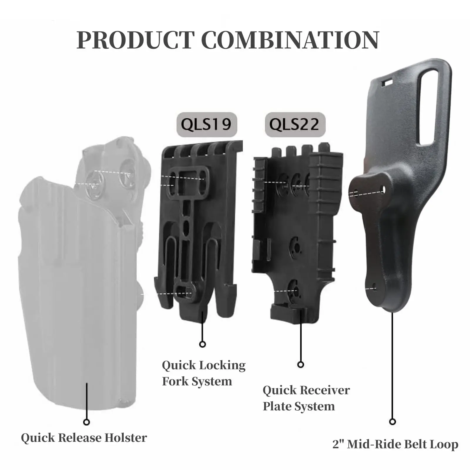 Kit de sistema de bloqueo rápido QLS con pasante para cinturón de paseo medio de 2", incluye horquilla y placa receptora de servicio y correa elástica para pierna, equipo de caza