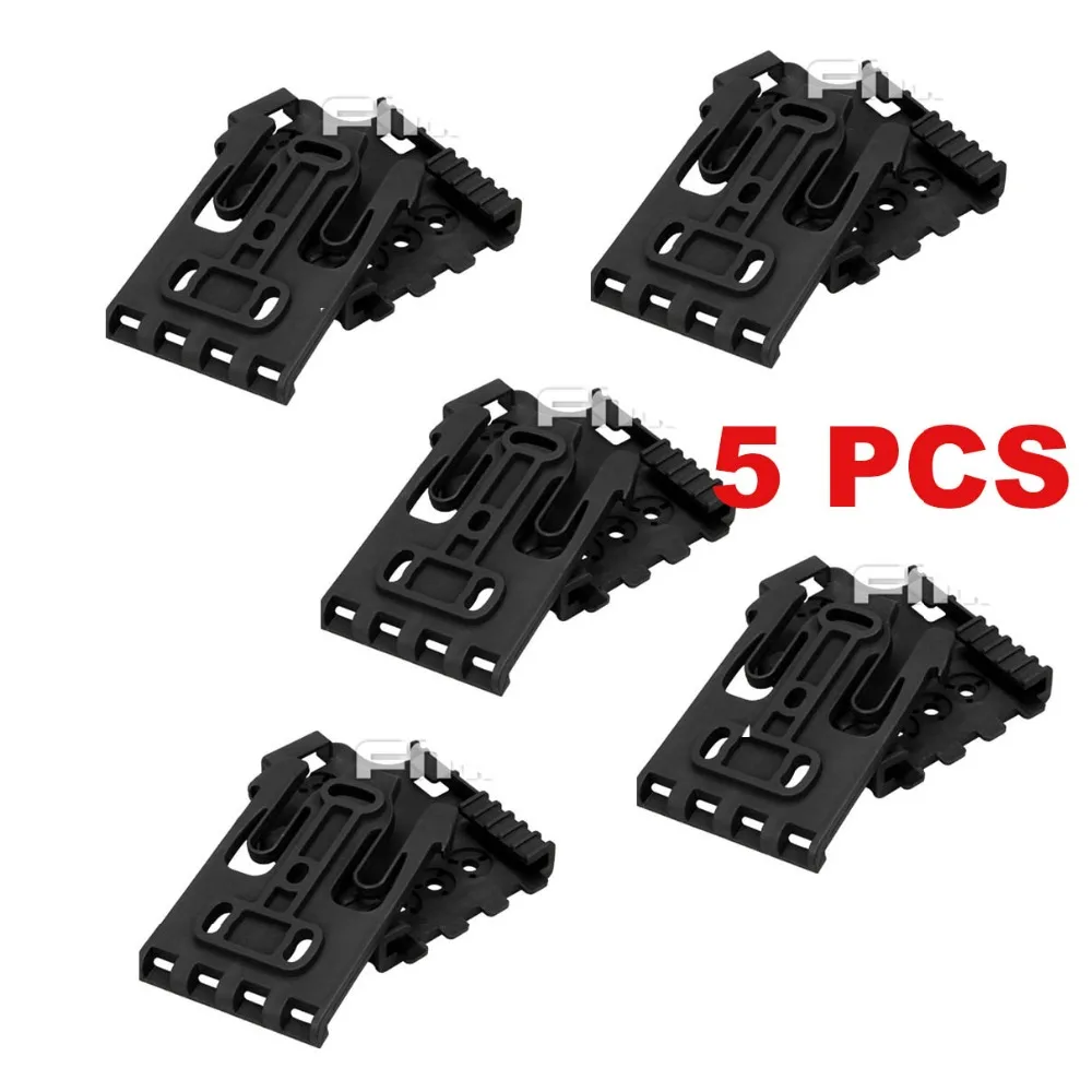 El par macho/hembra QLS, que se muestra aquí, se puede instalar en cualquier combinación de funda/pieza trasera QLS, lo que le permite cambiar rápidamente su funda a otra pieza trasera que contenga la QLS 22, según sea necesario. Las dos partes, la QLS 19 y la QLS 22 se deslizan rápida y fácilmente juntas y se bloquean, formando un accesorio sólido como una roca entre su funda y UBL, placa de pierna táctica, chaleco MOLLE, tablero de coche, mesita de noche, o en cualquier otro lugar donde Monte la placa receptora.