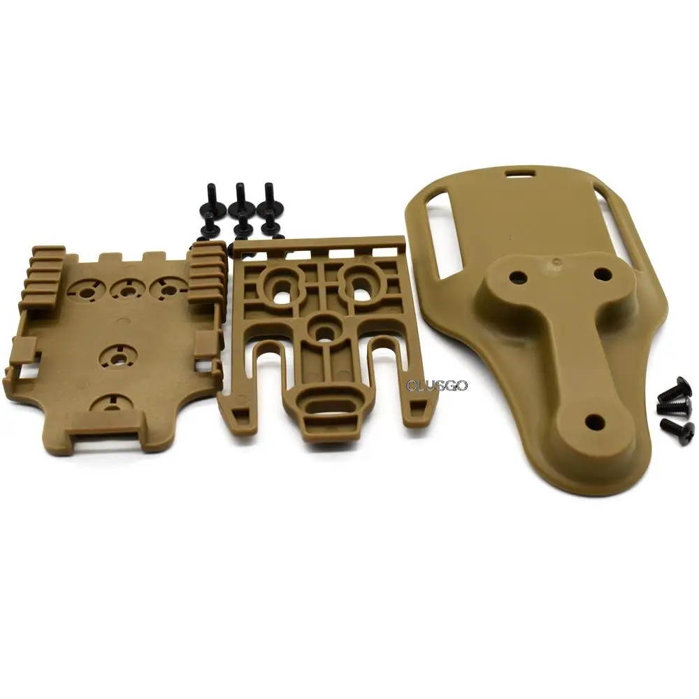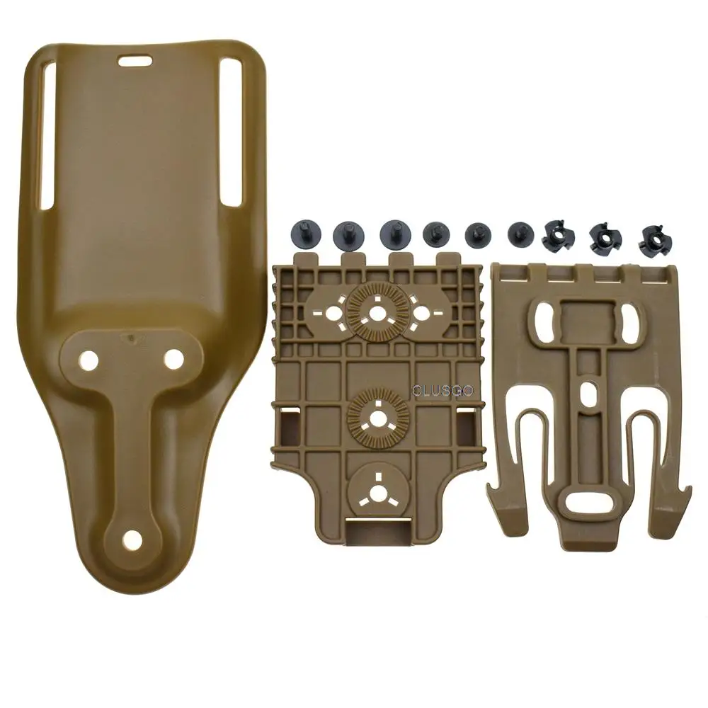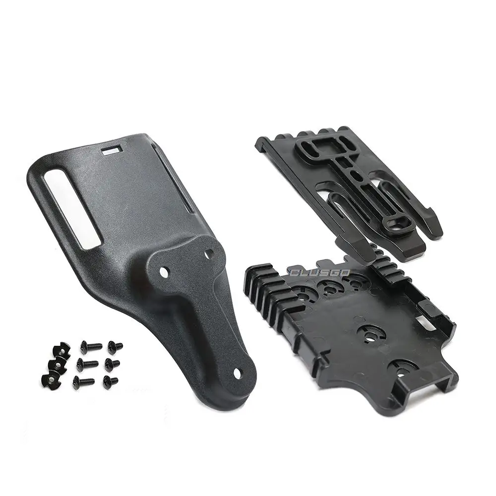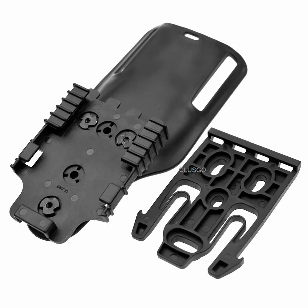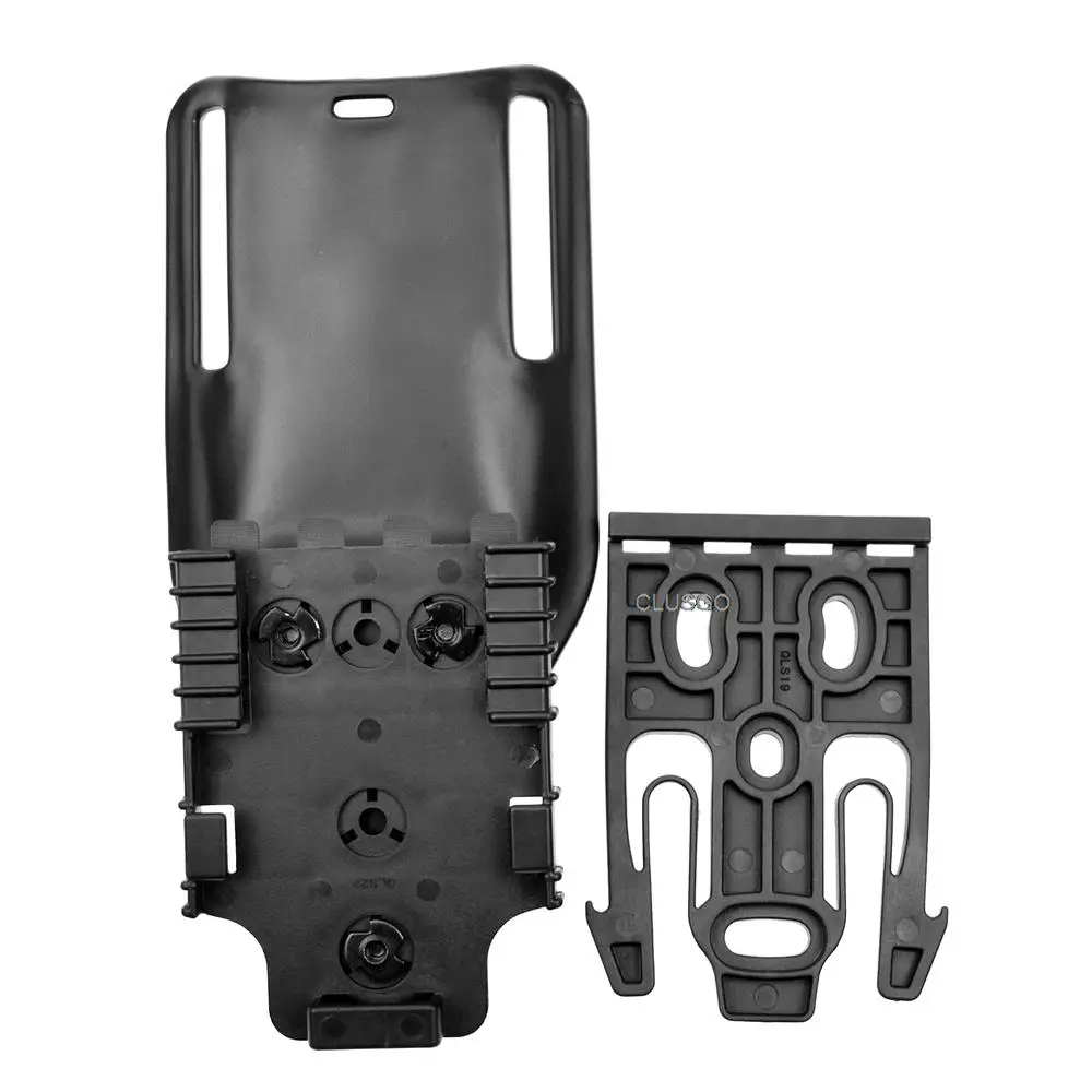 Las dos partes, la QLS 19 y la QLS 22 se deslizan rápida y fácilmente juntas y se bloquean, formando un accesorio sólido como una roca entre su funda y UBL, placa de pierna táctica, chaleco MOLLE, tablero de coche, mesita de noche, o en cualquier otro lugar donde Monte la placa receptora.