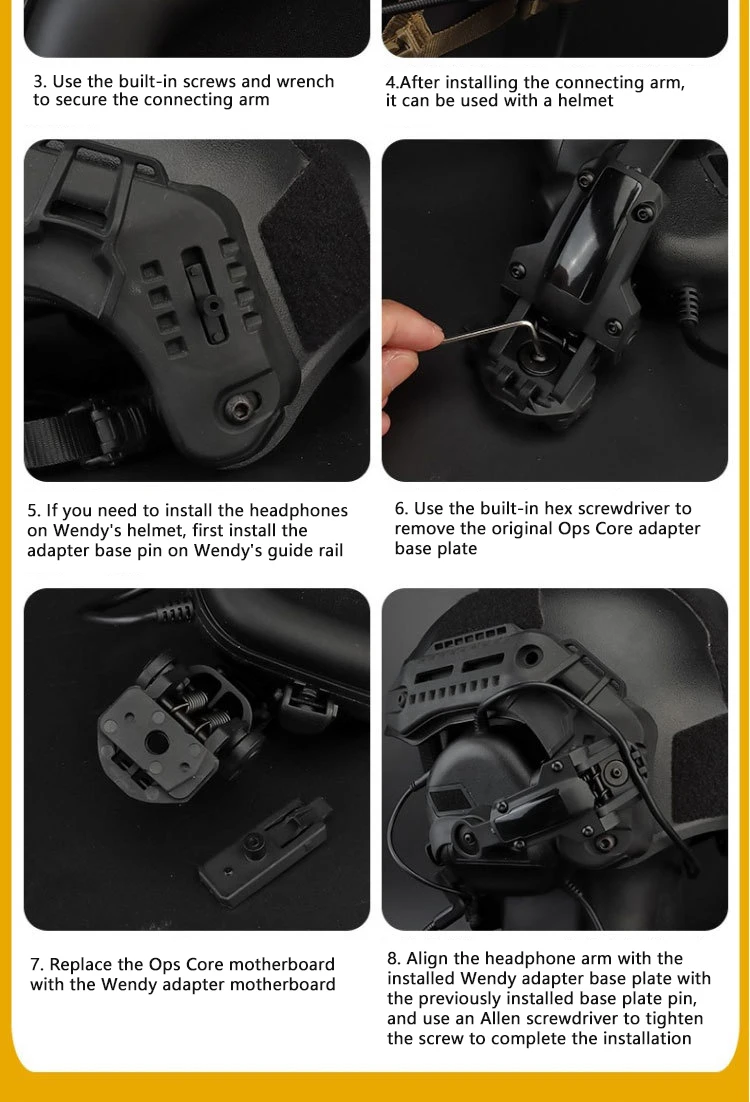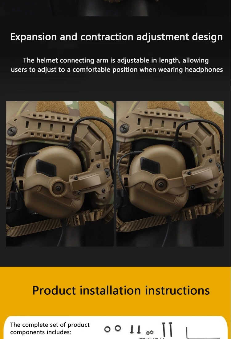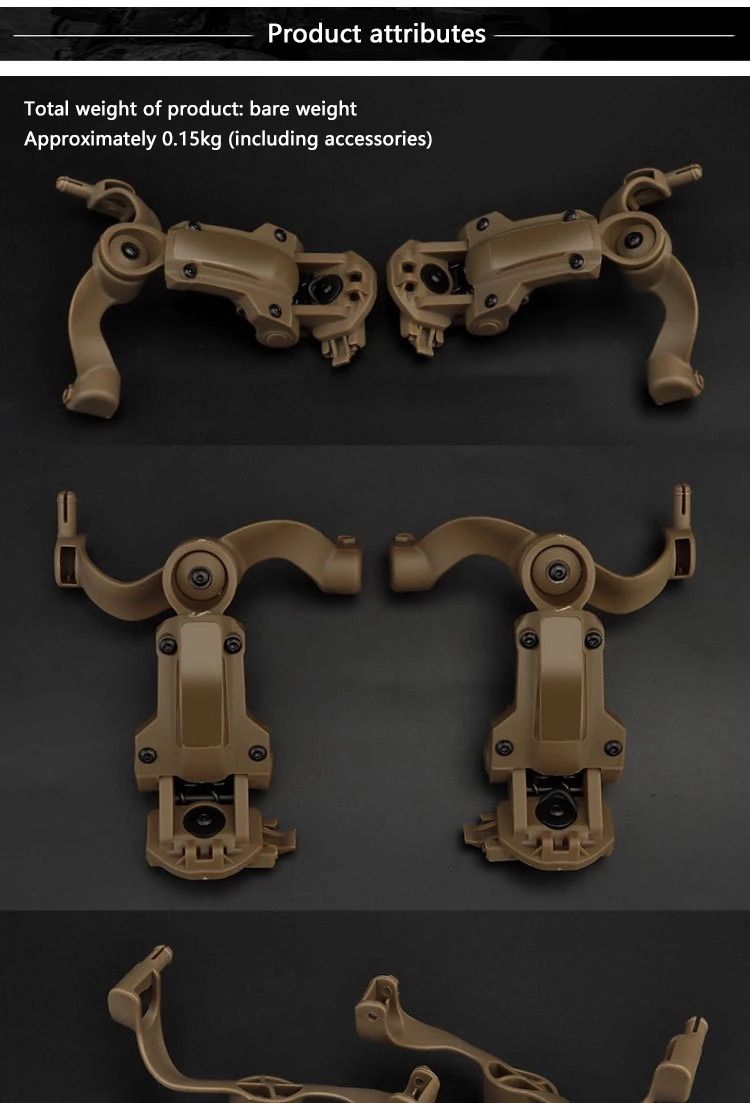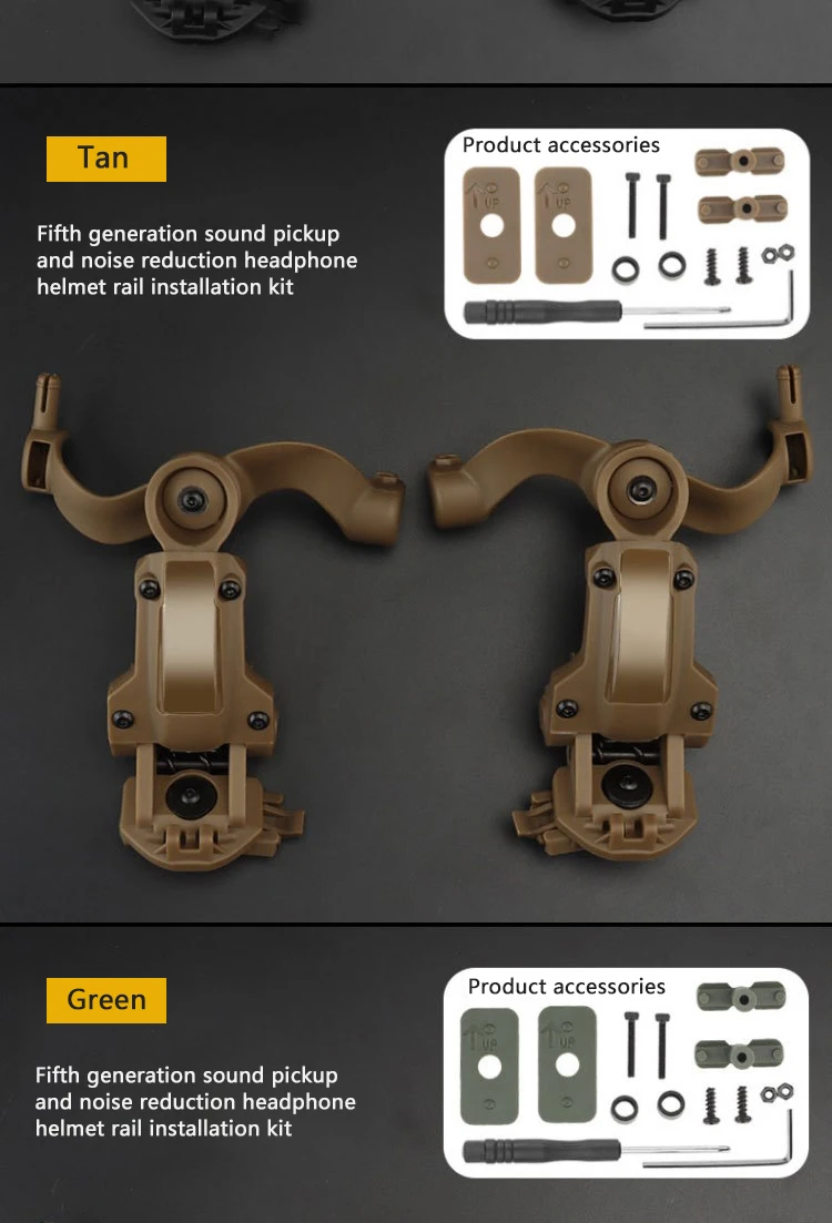Kit de soporte táctico militar para auriculares, soporte giratorio multiángulo para auriculares, adaptador de pista para casco