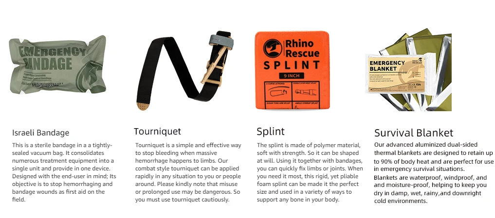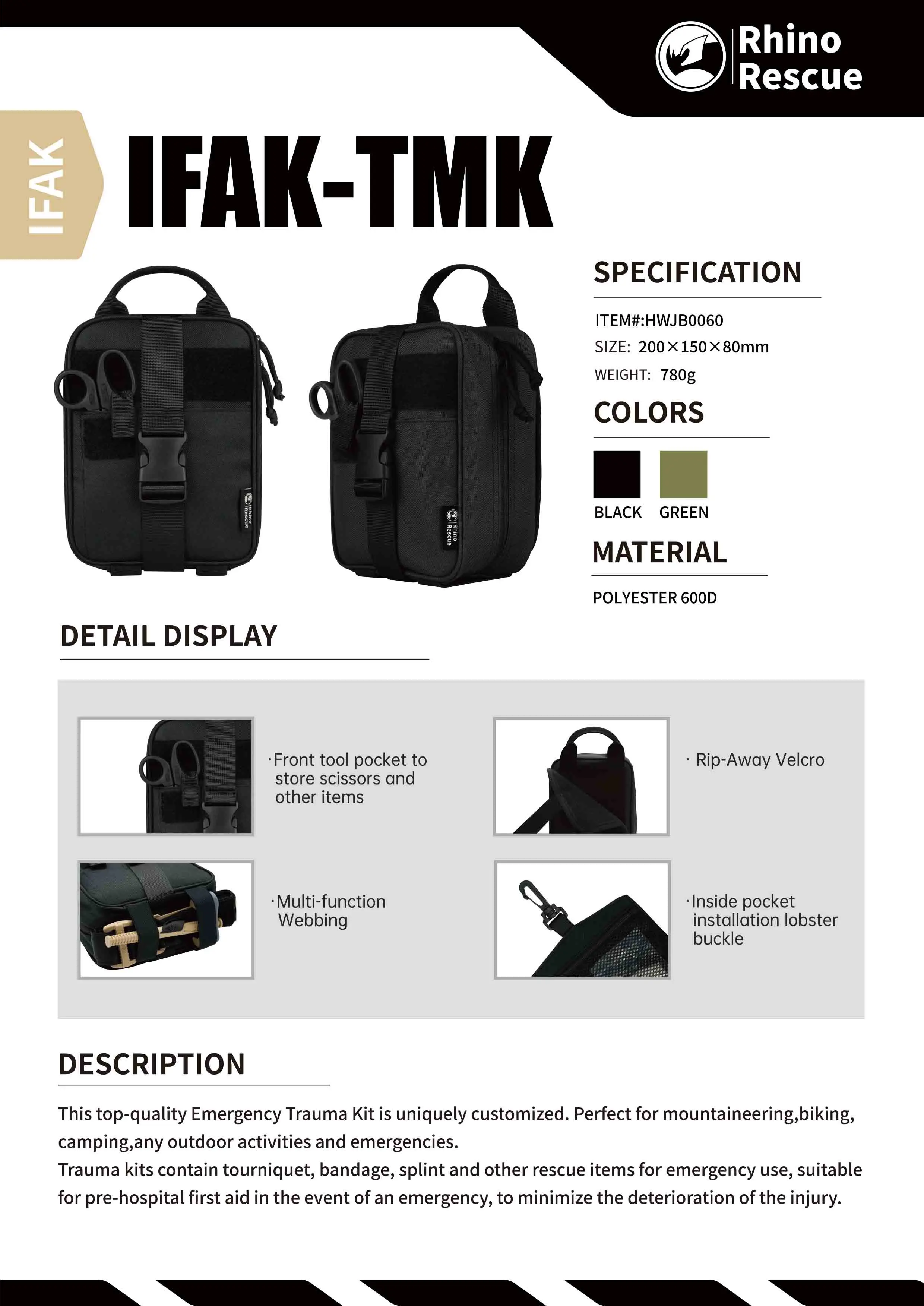 A6:Founded in 2010,Rhino Rescue began as a pre-hospital emergency product supplier. Based on the concept of fast, efficient and scientific transfer of emergency care, we continuously improve and innovate our products, providing premium first aid and IFAK supplies to worldwide front-line emergency medical personnel. In the EMS specialty, we are your professional partner.