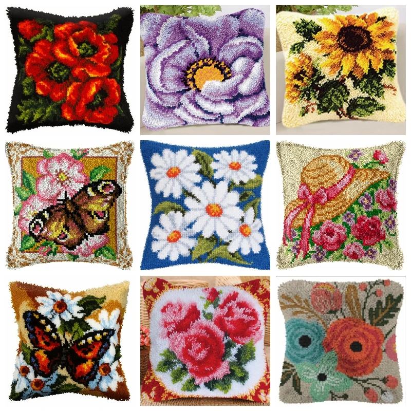 Hots Classic Butterfly Flowers Latch Hook Rug Kits DIY Pillow With Preprinted Canvas Embroidery Kits Cross Stitch Latch Hook Kit