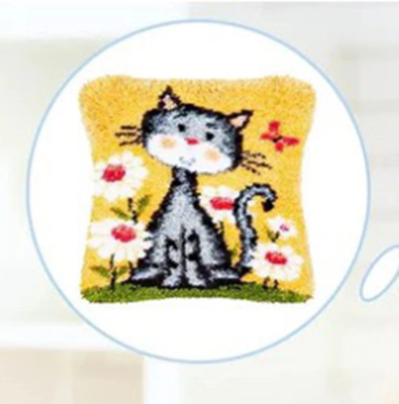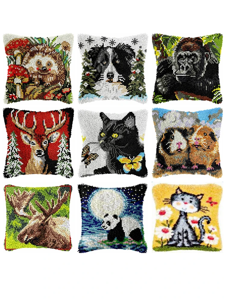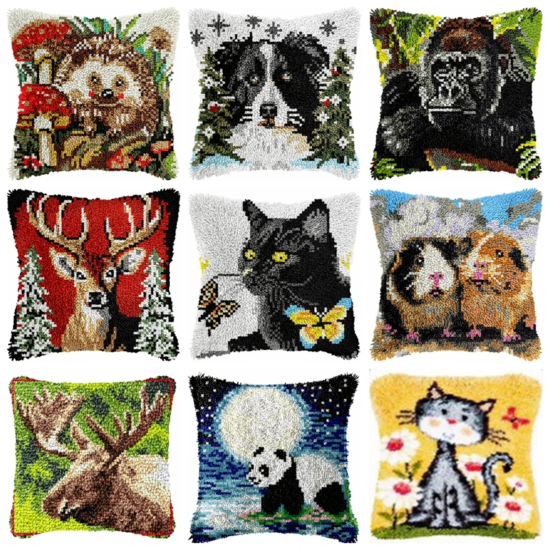 Kits de almohadas con gancho de pestillo para animales, alfombra para perros y gatos, bordado, kits artesanales de punto de cruz, botones de Smyrna, paquete de almohada con nudo, decoración del hogar