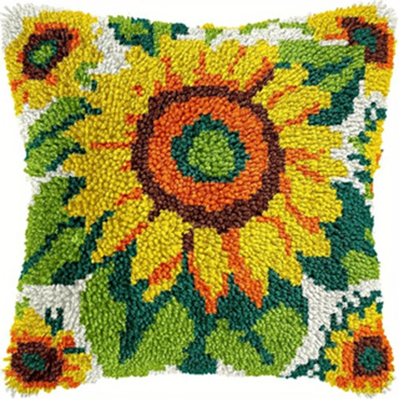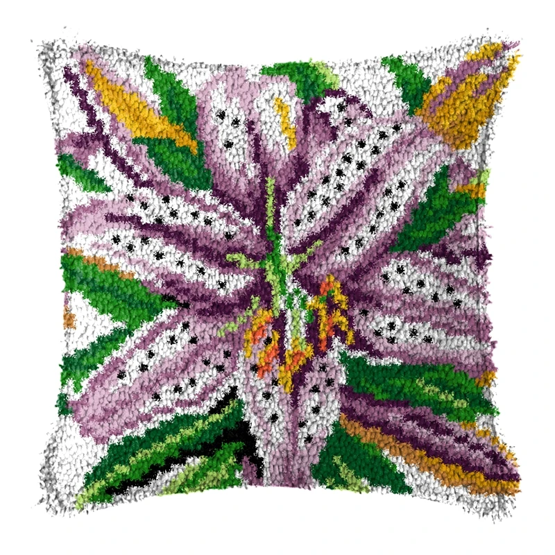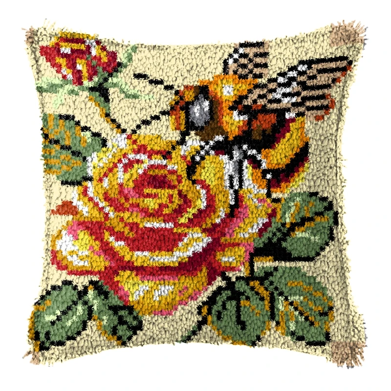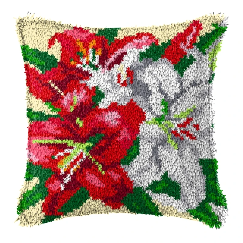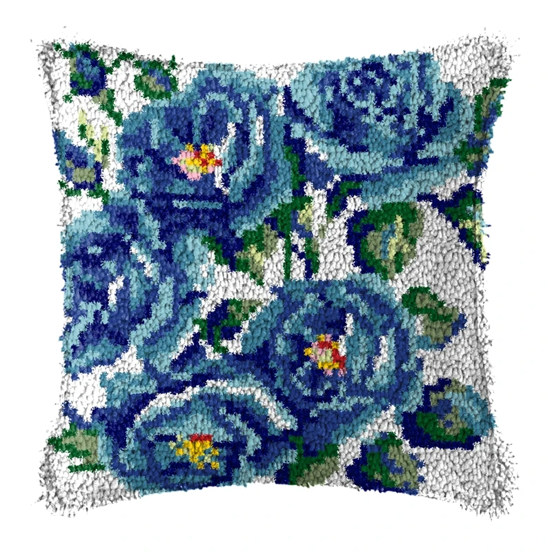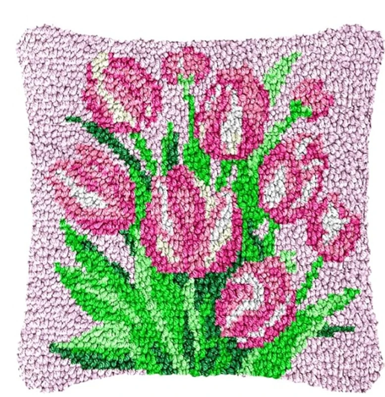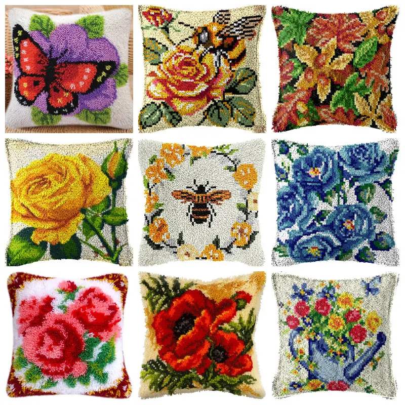 Kits de almohadas con gancho de pestillo floral Kit de alfombra bordada con lienzo preimpreso y suministros de hilo acrílico