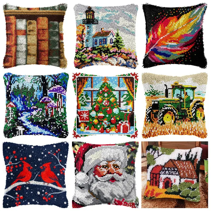 Kits de almohadas con gancho para pestillo de bordado, ganchos tejidos a mano, Kit de alfombra para alfombra bordada para decoración de sofá
