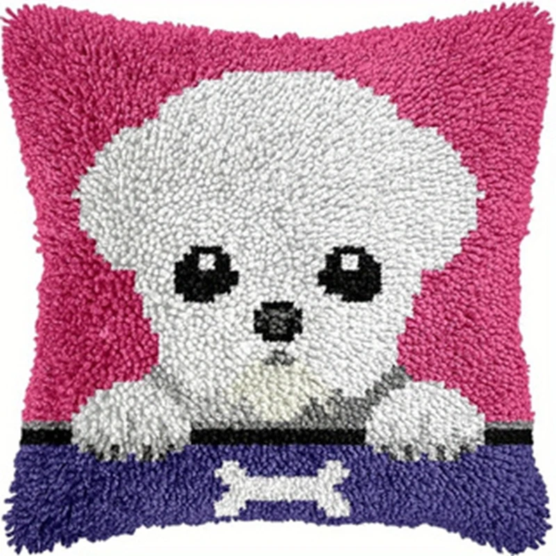 Kits de almohadas con gancho de pestillo de dibujos animados, paquete de alfombra con bordado Pastel con adorno de pompón esponjoso y caja de regalo