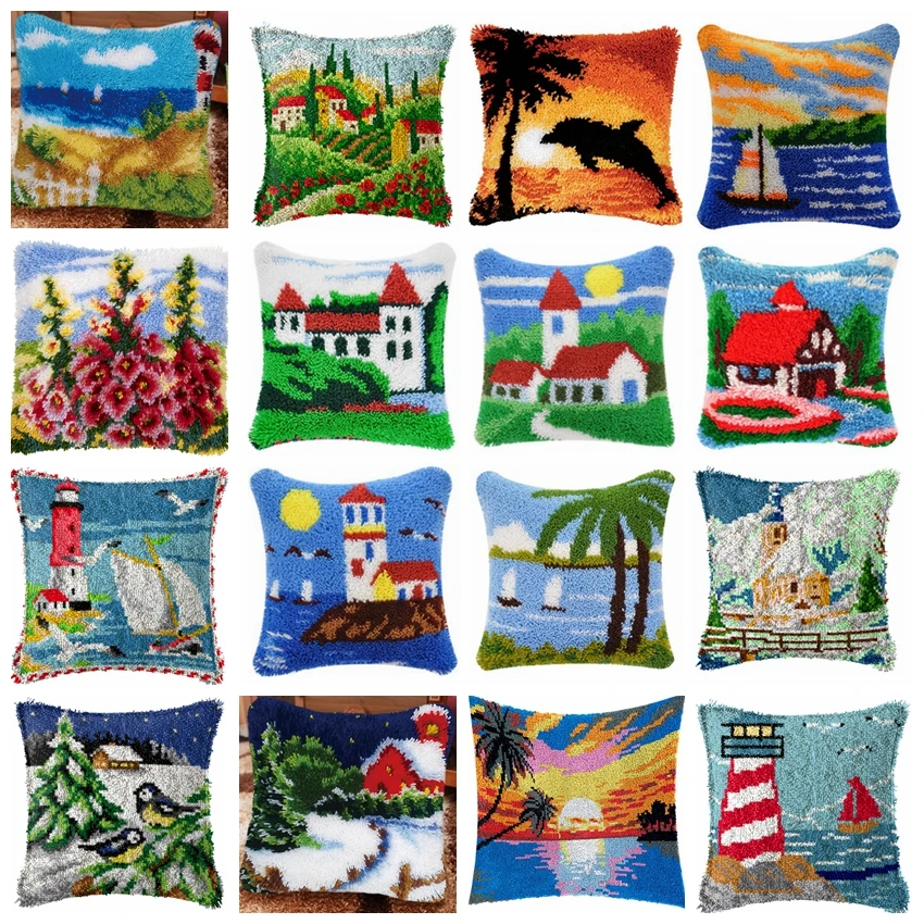 Kits de cojines con gancho de pestillo para paisaje al aire libre, funda de almohada de ganchillo, Hobby y manualidades, hilo DIY para funda de cojín bordada, almohada para sofá cama