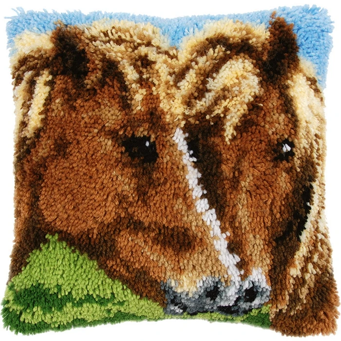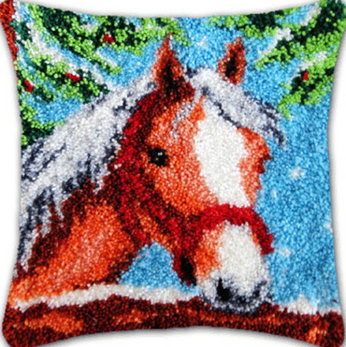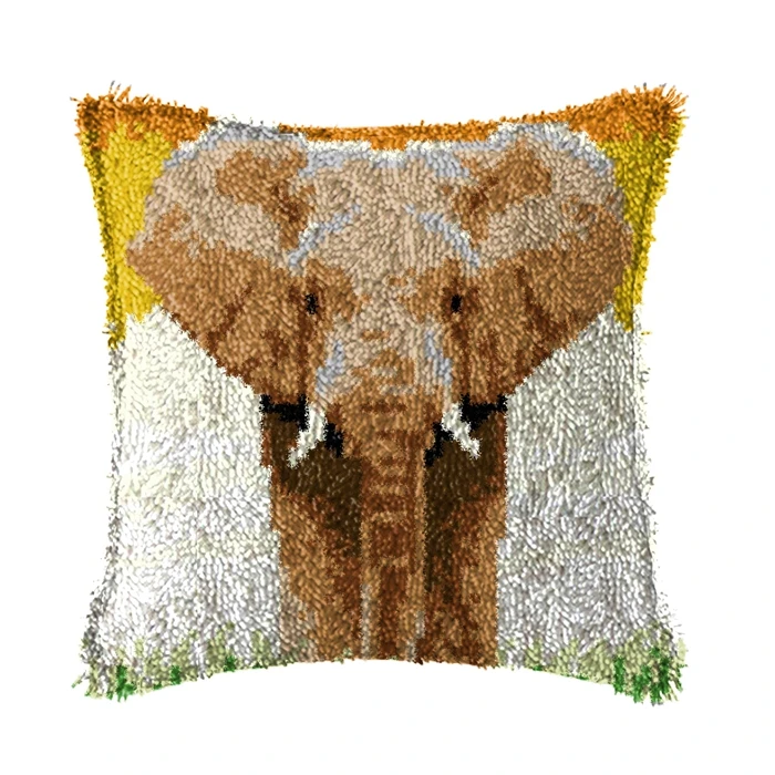 Caballo León elefante Latch Hook Kits funda de almohada 3D segmento bordado almohada lona lana bordado funda de cojín DIY almohadas