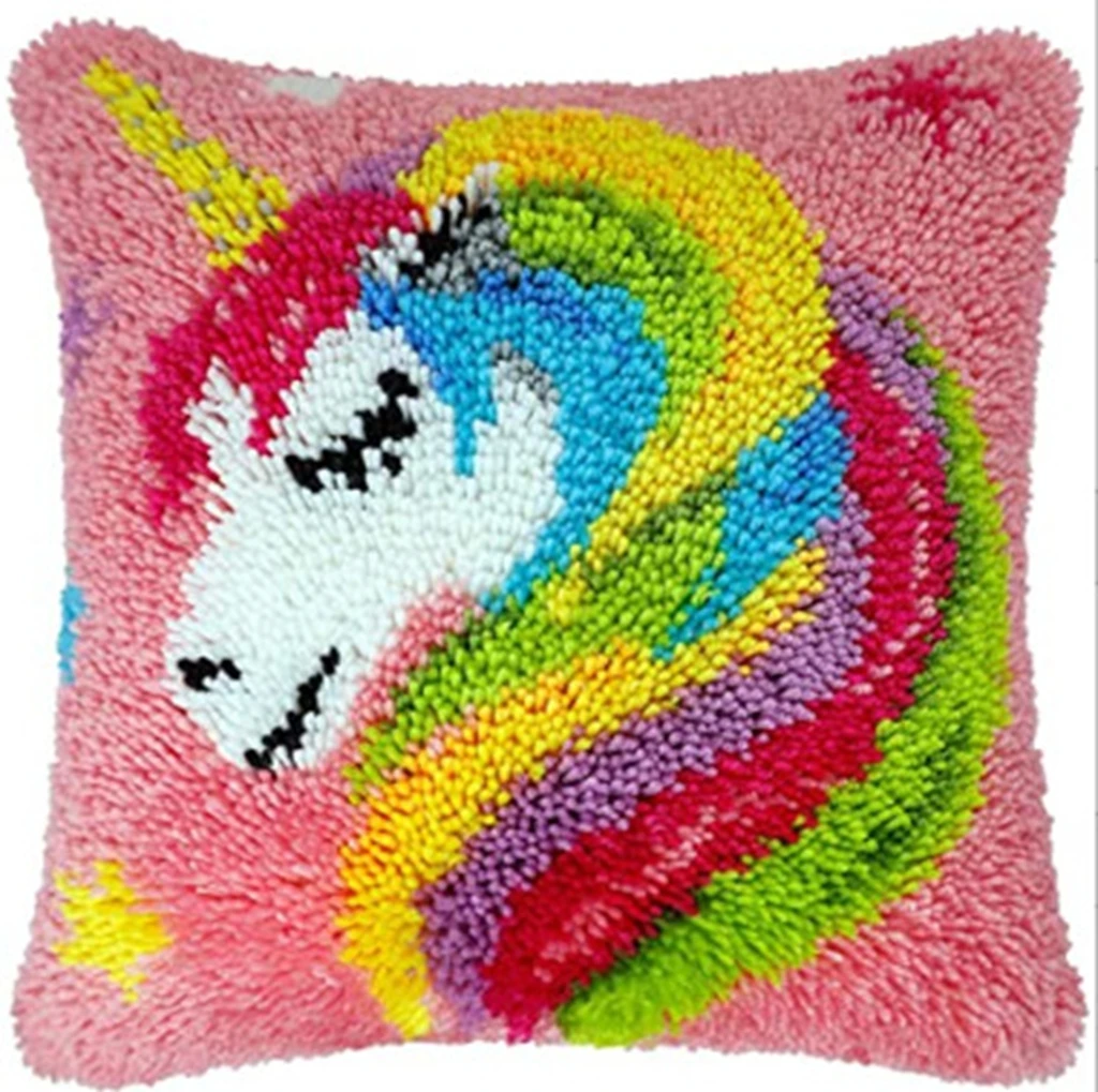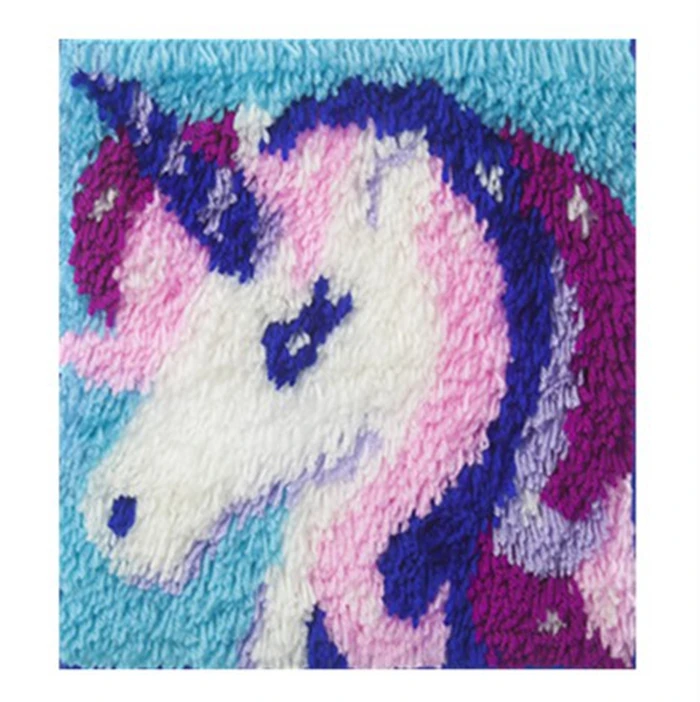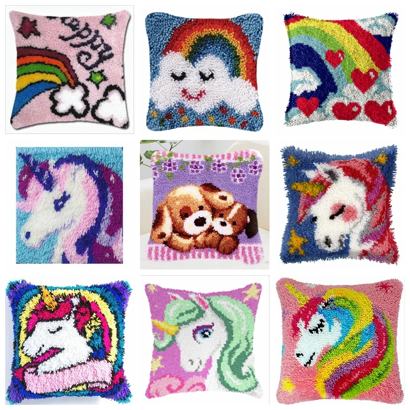 Kits de gancho de pestillo de dibujos animados de unicornio, alfombras, gancho de pestillo de animales, Kits de fabricación de alfombras, paquete de botones de Smyrna, alfombra bordada DIY, almohada, regalos