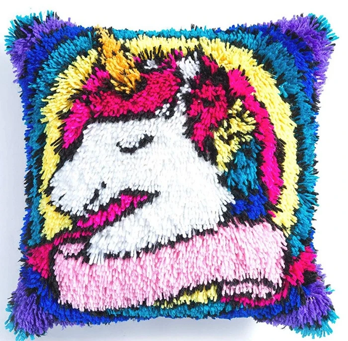 Kits de gancho de pestillo de dibujos animados de unicornio, Kits de fabricación de alfombras de animales, paquete de botones de Smyrna, alfombra bordada DIY, regalos de almohada