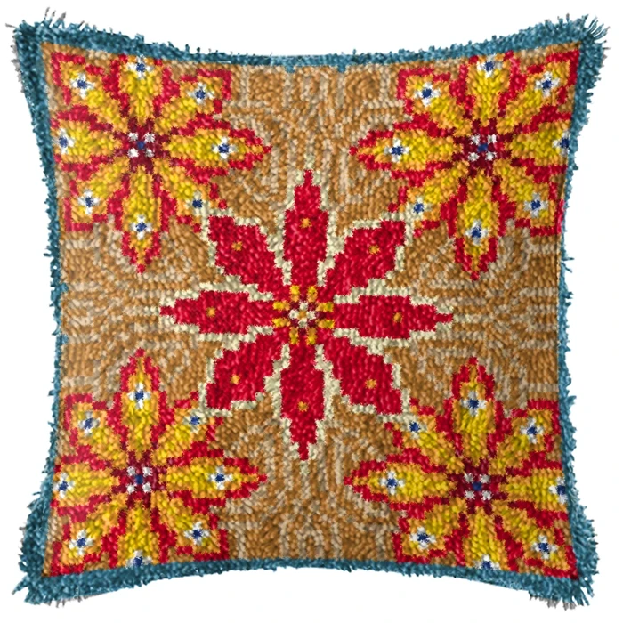 Kits de gancho de pestillo de dibujos animados de rayas Retro, almohada bordada con segmento 3D, alfombra de punto de cruz de lana bordada, almohadas de gancho de pestillo DIY