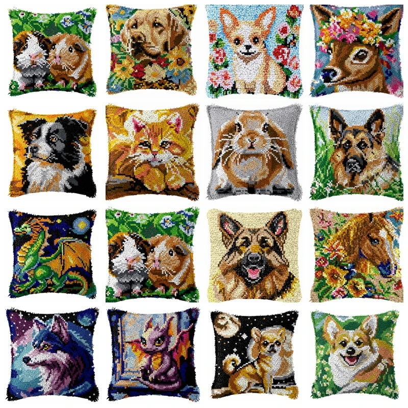 Kits de ganchos de pestillo de estilo Animal Corgi, segmento de perro y gato, almohada bordada, punto de cruz de lana, alfombra bordada, almohadas de gancho de pestillo DIY