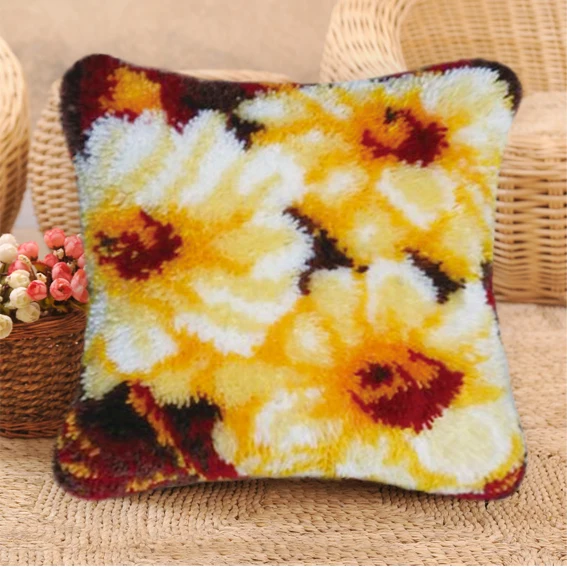 Mandala-Kits de gancho de pestillo de girasol, funda de almohada para plantas, paquete de almohada con nudo, Kit de gancho de pestillo, juego para cojín bordado