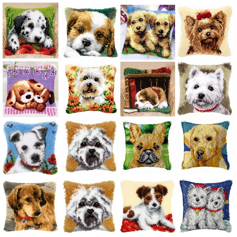 Perro Animal serie Latch Hook Kits perros 3D segmento bordado almohada lana punto de cruz alfombra bordado DIY Latch Hook almohada