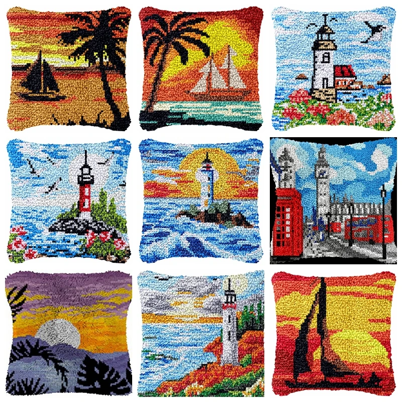 Kits de ganchos de pestillo de paisaje Natural, funda de almohada de animales, paquete de almohada con nudo, Kit de ganchos de pestillo, conjunto para decoración de cojín bordado de costura