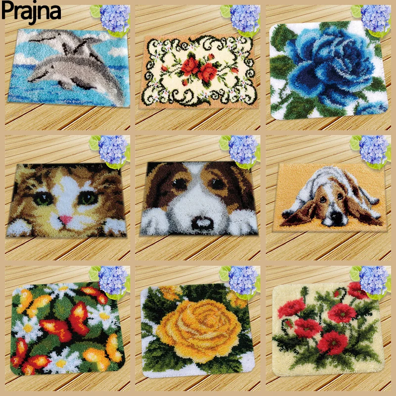 Gato de dibujos animados perro alfombra bordado pestillo gancho ballena alfombra bordado Animal pestillo gancho alfombra kits para adultos decoración del hogar