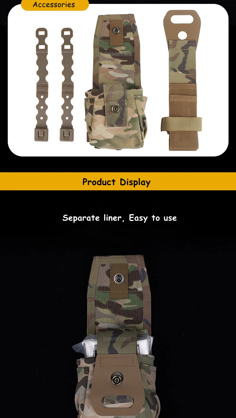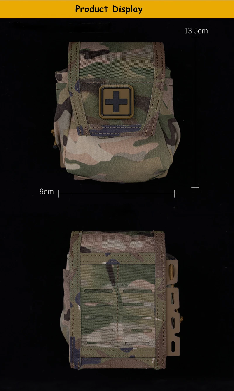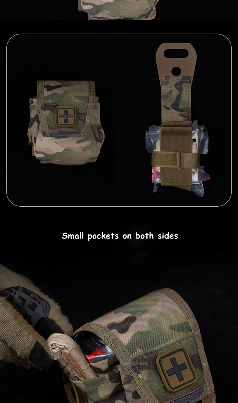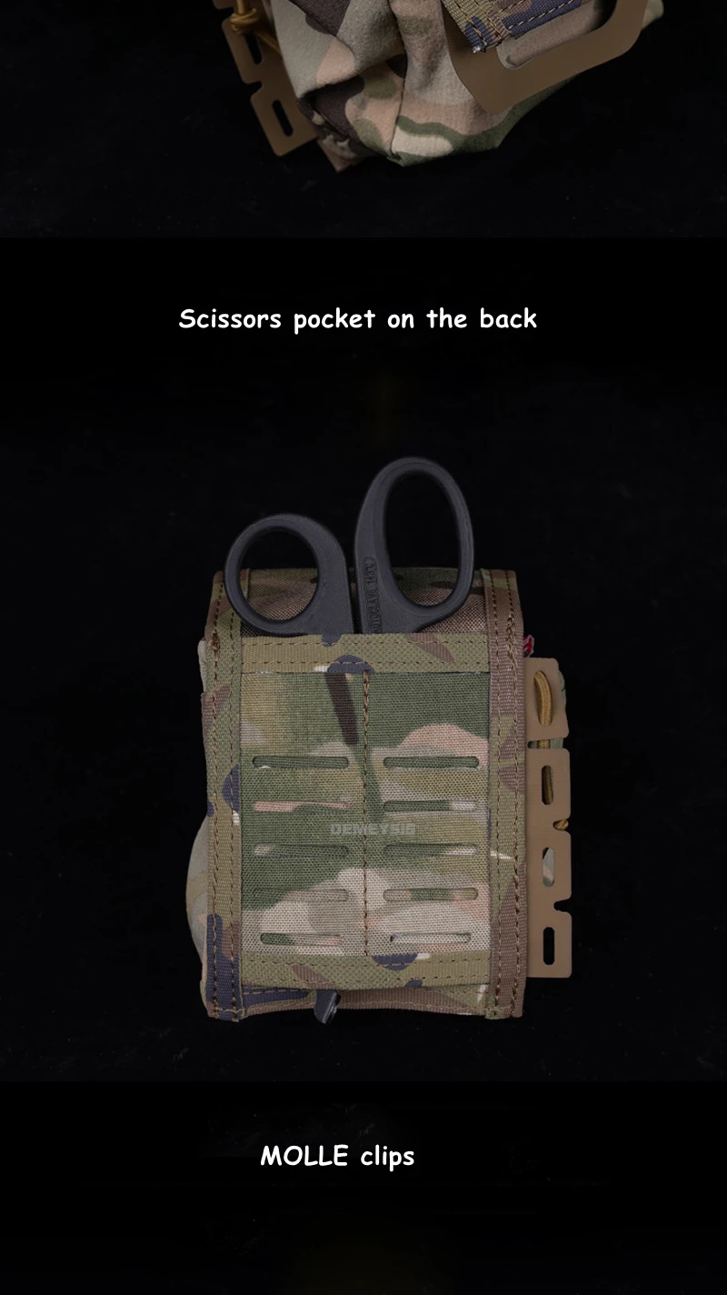 ●Equipado con clips MOLLE.Es fácil y conveniente instalar y quitar la bolsa médica de su cinturón de servicio o chaleco táctico.