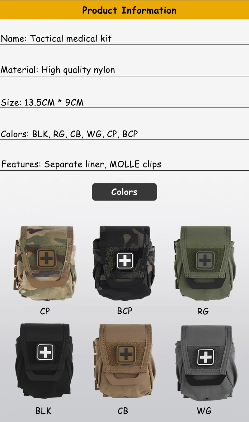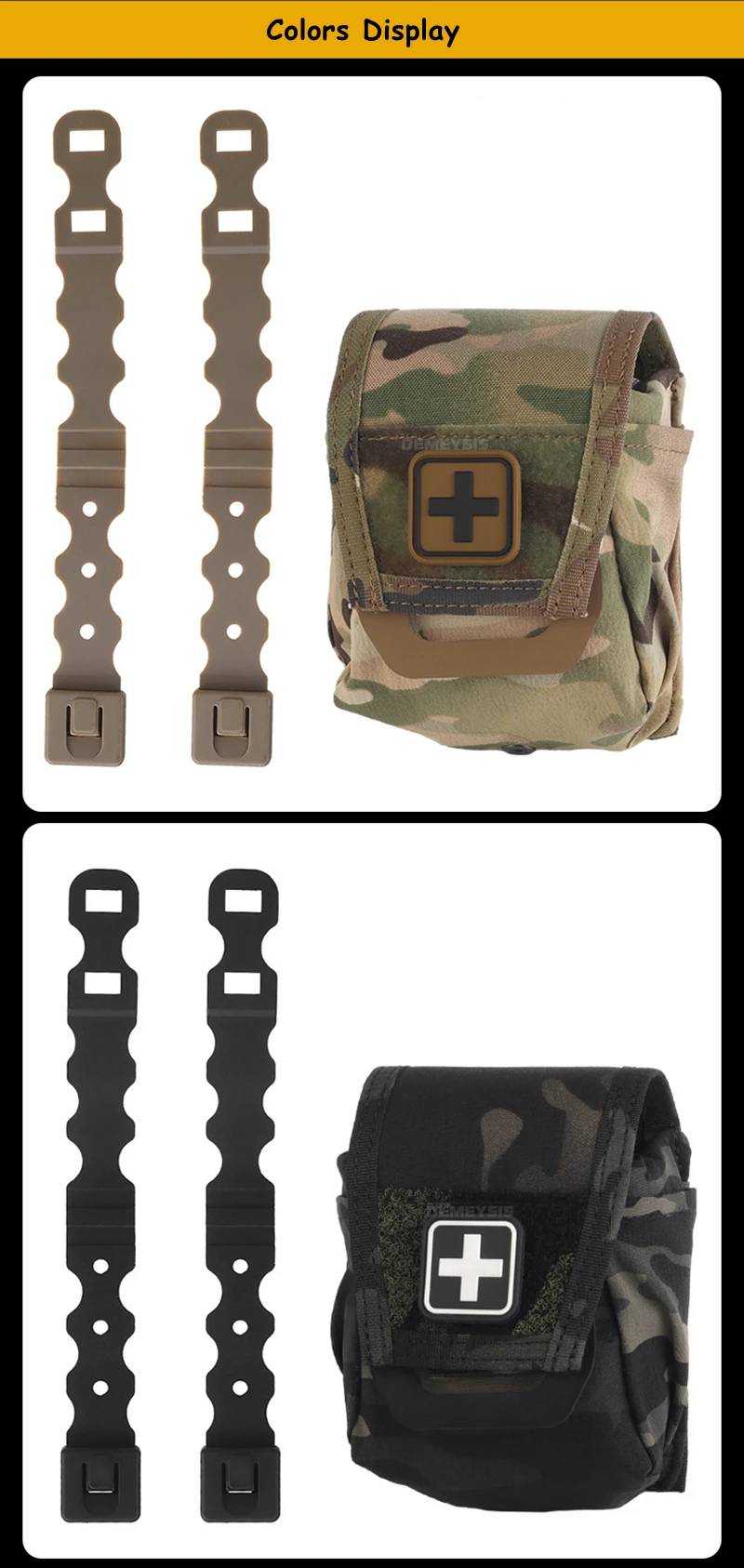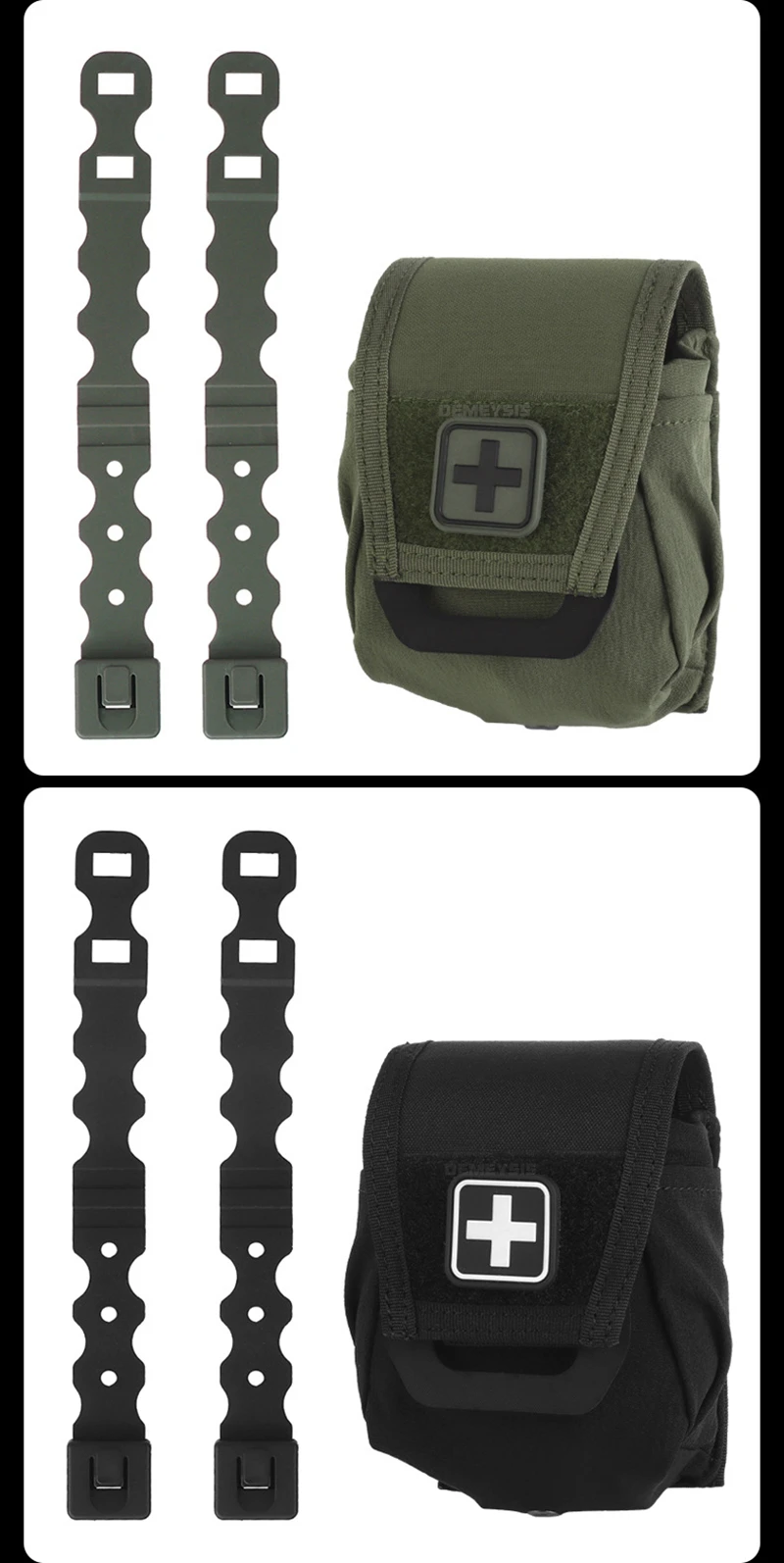 ●Equipado con clips MOLLE.Es fácil y conveniente instalar y quitar la bolsa médica de su cinturón de servicio o chaleco táctico.
