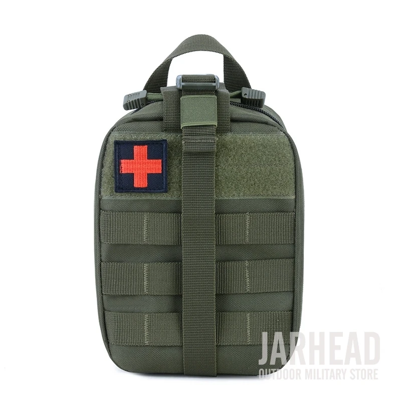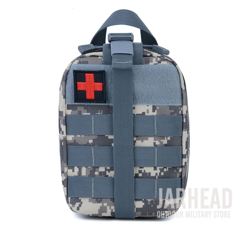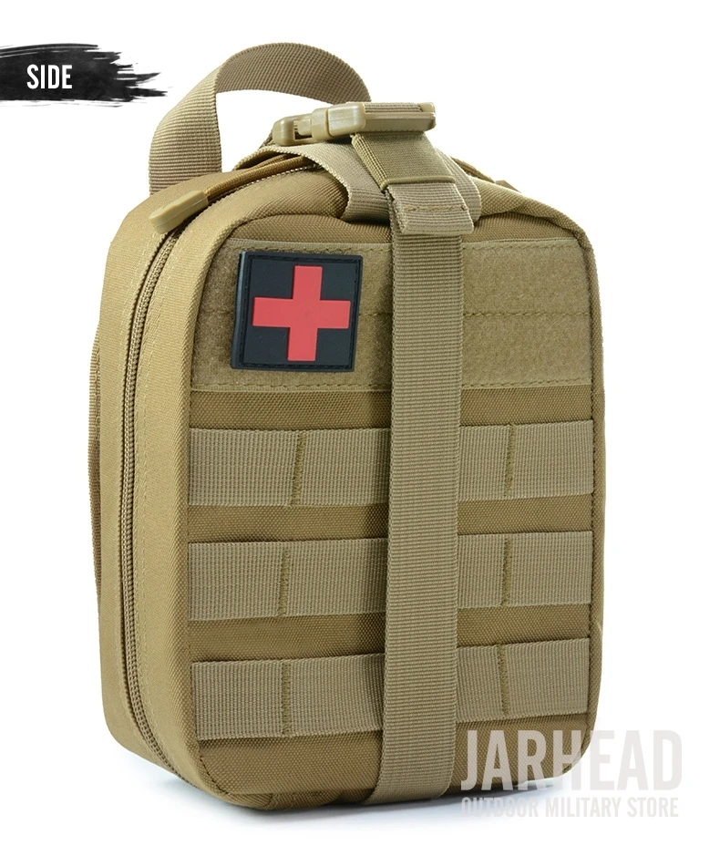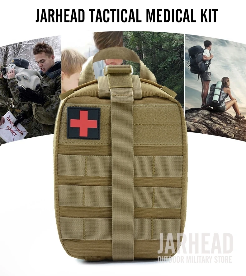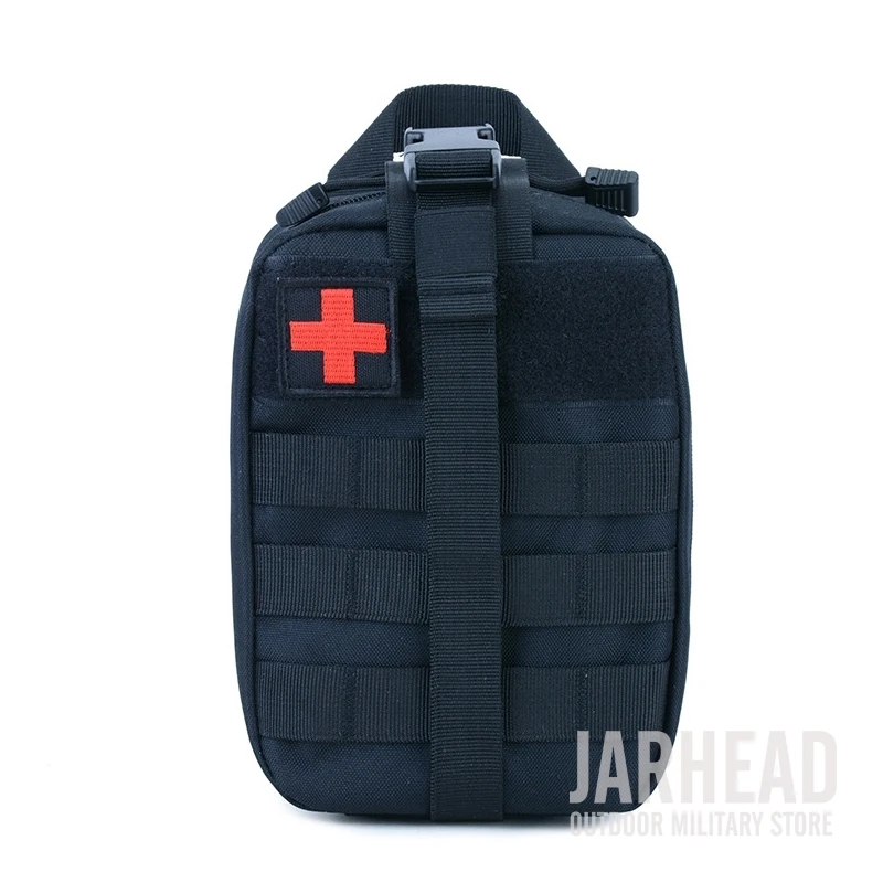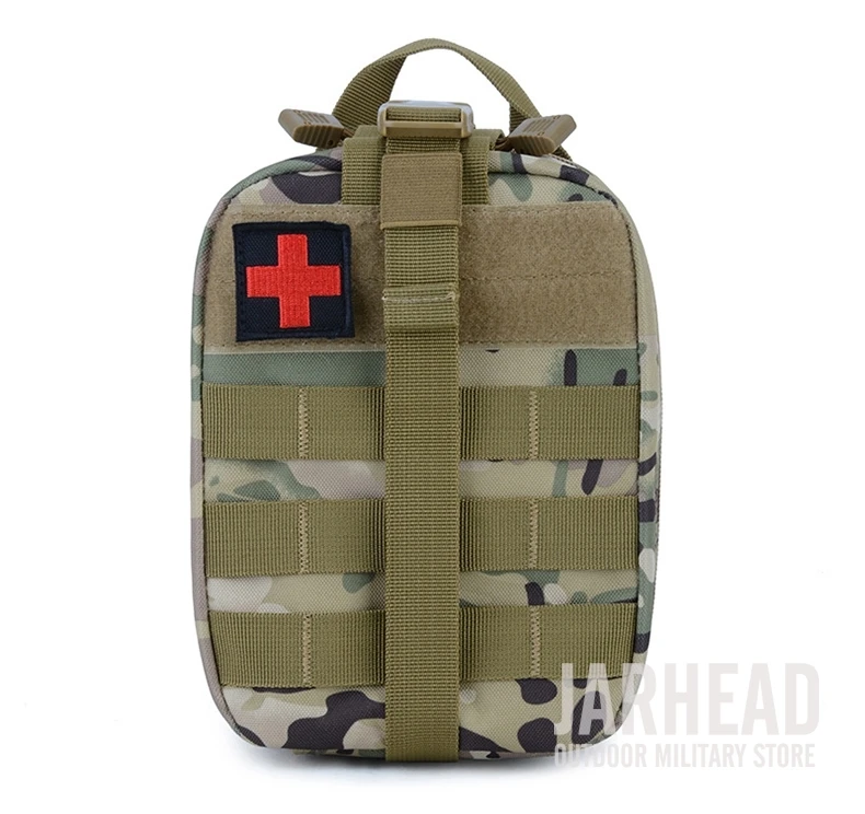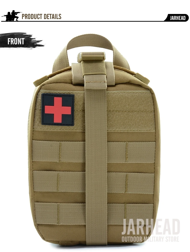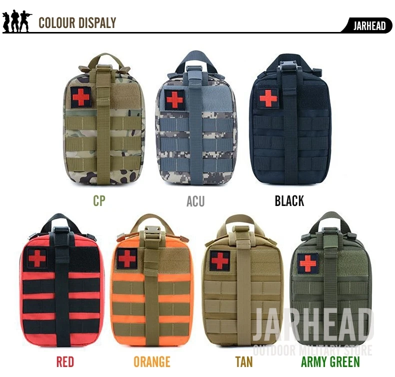 Esta bolsa médica de primeros auxilios para exteriores está diseñada para primeros auxilios y emergencias. Con un diseño de tres pliegues, Esta bolsa tiene 3 compartimentos espaciosos que contienen múltiples bolsillos y fuertes lazos elásticos para suministros médicos e instrumentos. El Cierre de doble cremallera permite un fácil acceso a sus suministros de primeros auxilios. Las correas molle con broches fuertes son convenientes para acoplar a cualquier engranaje compatible con MOLLE. Hecho de poliéster 600D de alta calidad, esta bolsa es resistente al desgarro y está diseñada para durar mucho tiempo. Es esencial para viajar, senderismo, montañismo, ciclismo, caza y muchas otras actividades al aire libre.