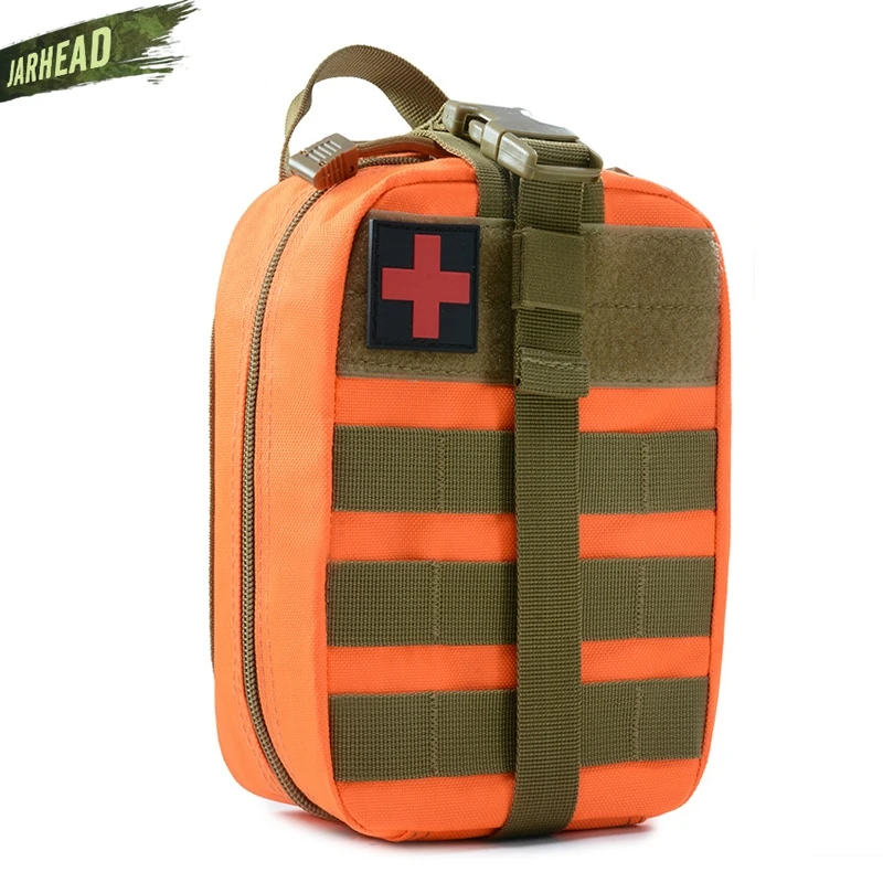 Esta bolsa médica de primeros auxilios para exteriores está diseñada para primeros auxilios y emergencias. Con un diseño de tres pliegues, Esta bolsa tiene 3 compartimentos espaciosos que contienen múltiples bolsillos y fuertes lazos elásticos para suministros médicos e instrumentos. El Cierre de doble cremallera permite un fácil acceso a sus suministros de primeros auxilios. Las correas molle con broches fuertes son convenientes para acoplar a cualquier engranaje compatible con MOLLE. Hecho de poliéster 600D de alta calidad, esta bolsa es resistente al desgarro y está diseñada para durar mucho tiempo. Es esencial para viajar, senderismo, montañismo, ciclismo, caza y muchas otras actividades al aire libre.