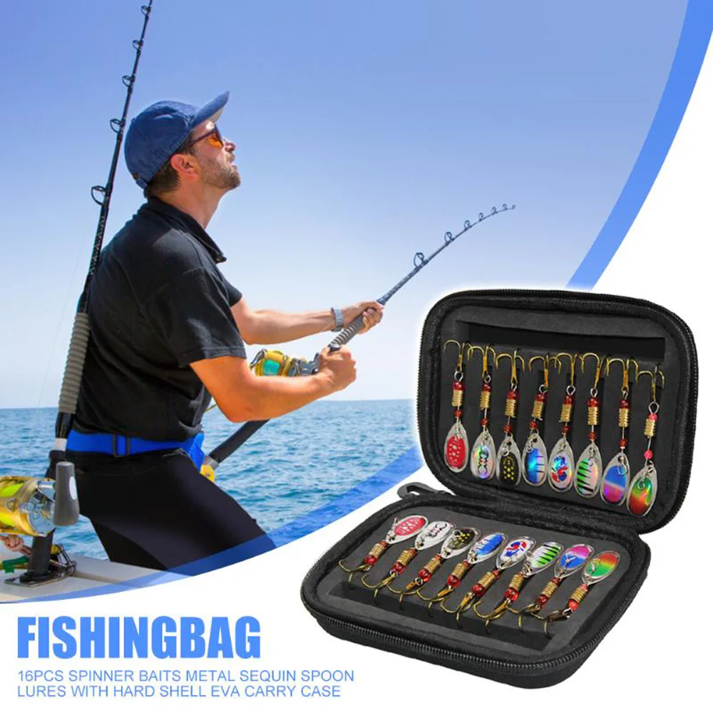 Kits de Señuelos de Pesca a prueba de agua, caja de lentejuelas de gancho de mosca, organizador de aparejos de pesca, bolsa de señuelo de pesca con mosca, cuchara giratoria, estuche de almacenamiento de cebo