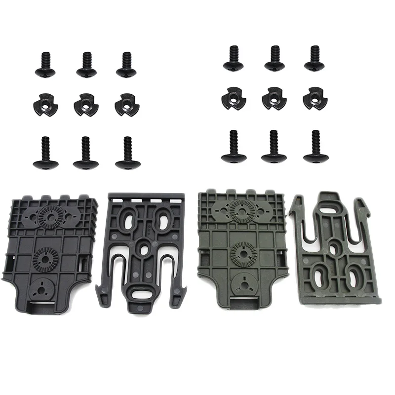 El par QLS macho/hembra, se muestra aquí, se puede instalar en cualquier combinación de cartuchera/pieza posterior de safari que le permita cambiar rápidamente su funda a otra pieza posterior que contiene la QLS 22 Según sea necesario. Las dos partes, el QLS 19 y QLS 22 se deslizan fácilmente y juntas y bloquean, formando un accesorio sólido de roca entre su funda y UBL, placa de pierna táctica, chaleco MOLLE, tablero de coche, mesa de noche, o en cualquier otro lugar que Monte la placa receptora.