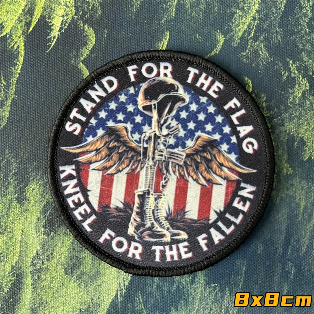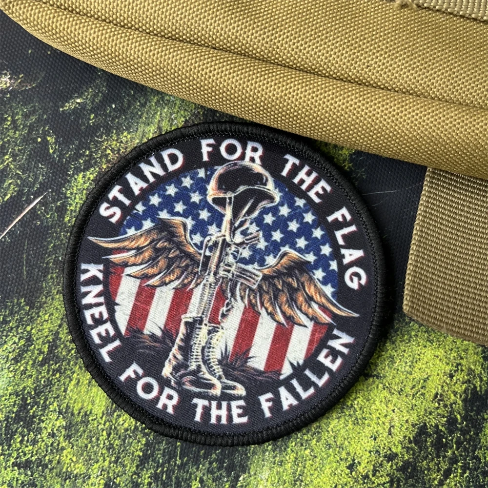 KNEEL FOR THE FALLEN moral Emblem US Flag Printing Patches Tactical Backpack Hook and Loop Sticker