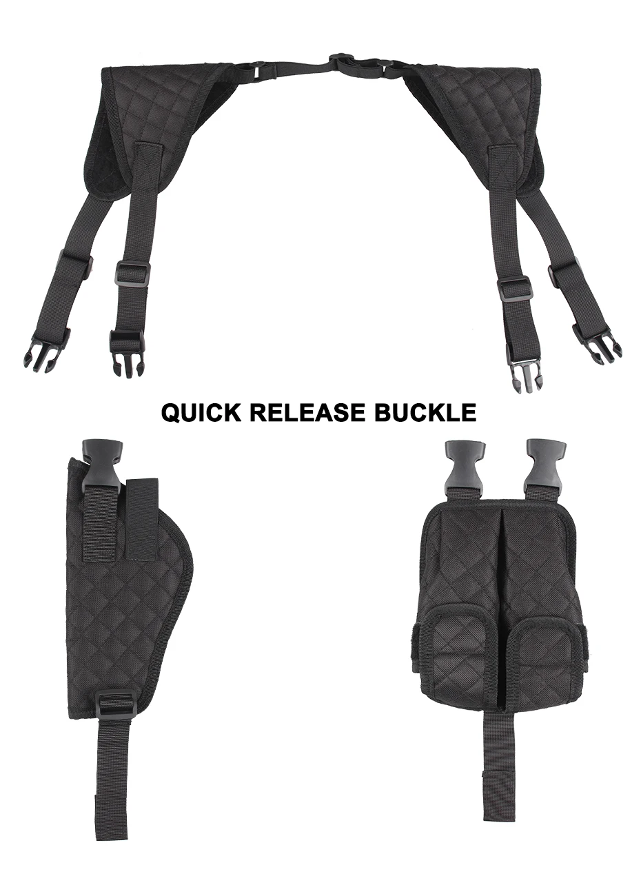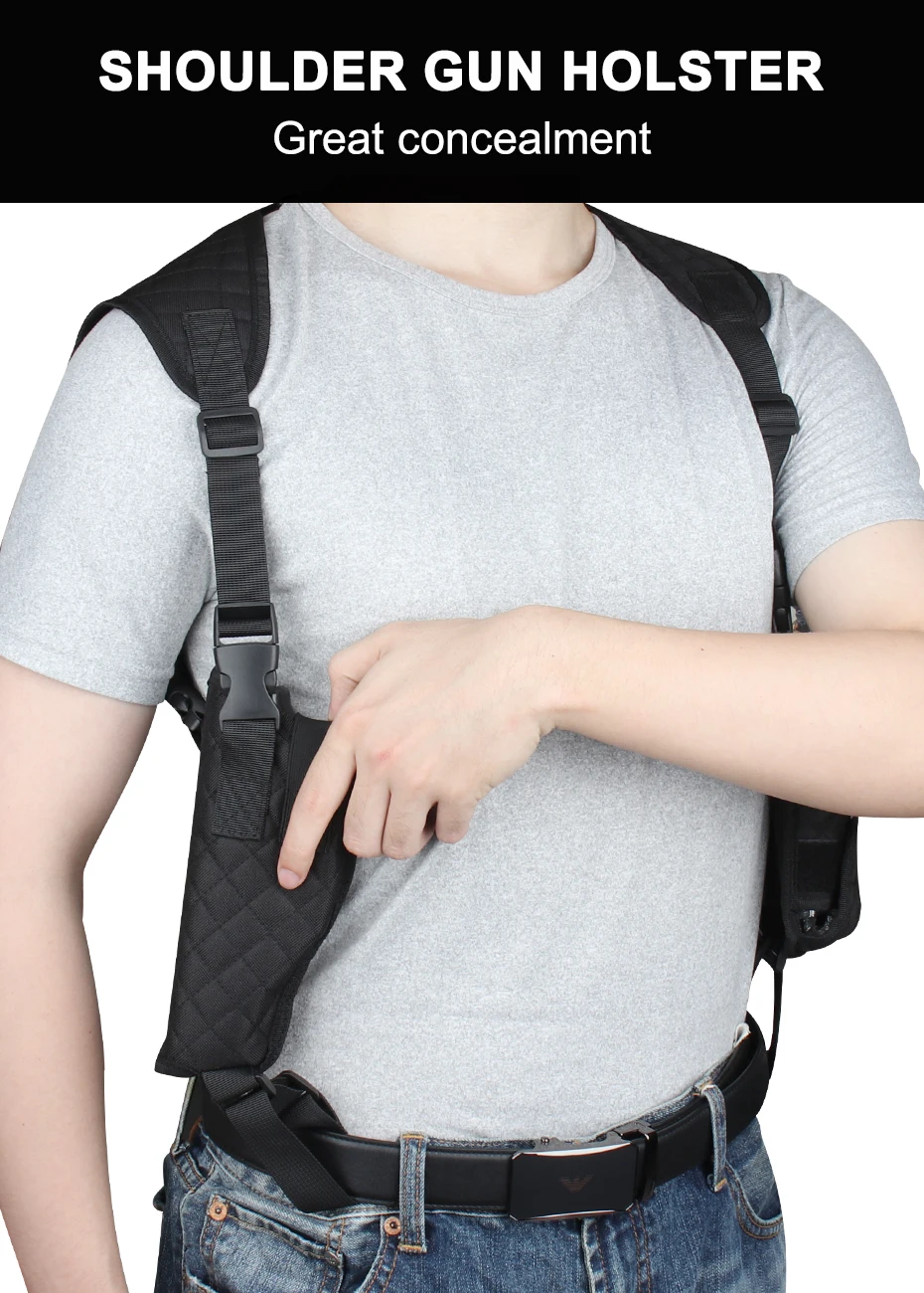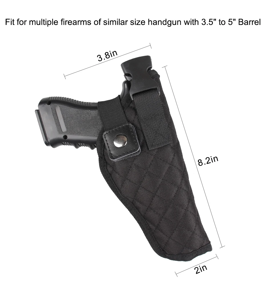 【DISEÑO PERFECTO】La funda con correa de retención de velcro de doble presión ajustable mantiene su pistola segura en su lugar. Las correas ajustables garantizan un ajuste cómodo, los broches para romper el pulgar te permiten sacar el arma de forma rápida y efectiva.