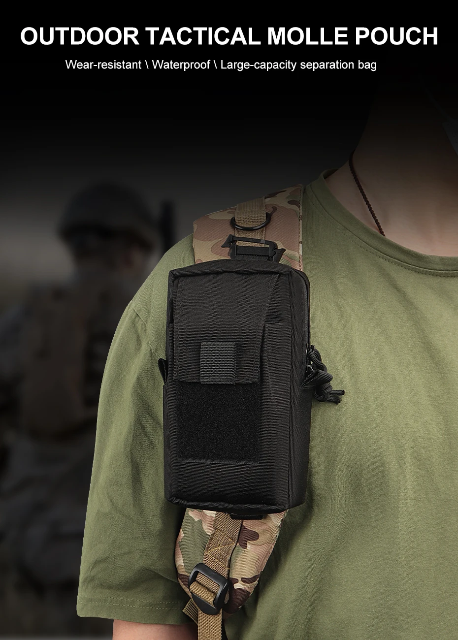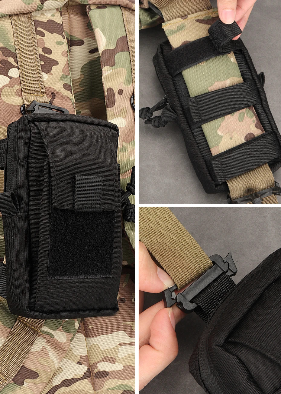 2. Sistema Molle. La correa molle tres trasera es conveniente para colgarla en su cinturón táctico, chaleco táctico, mochilas como accesorio adicional.