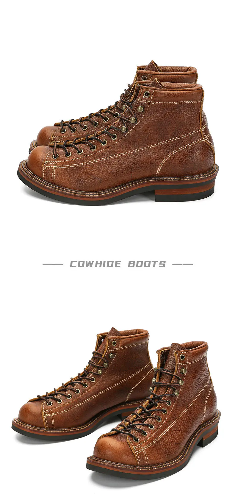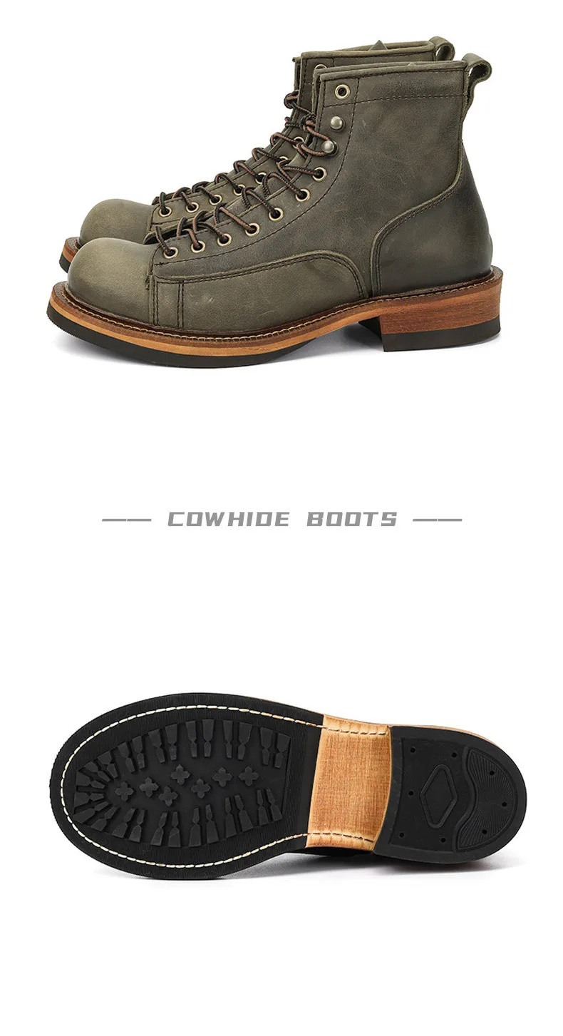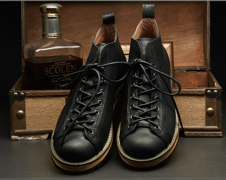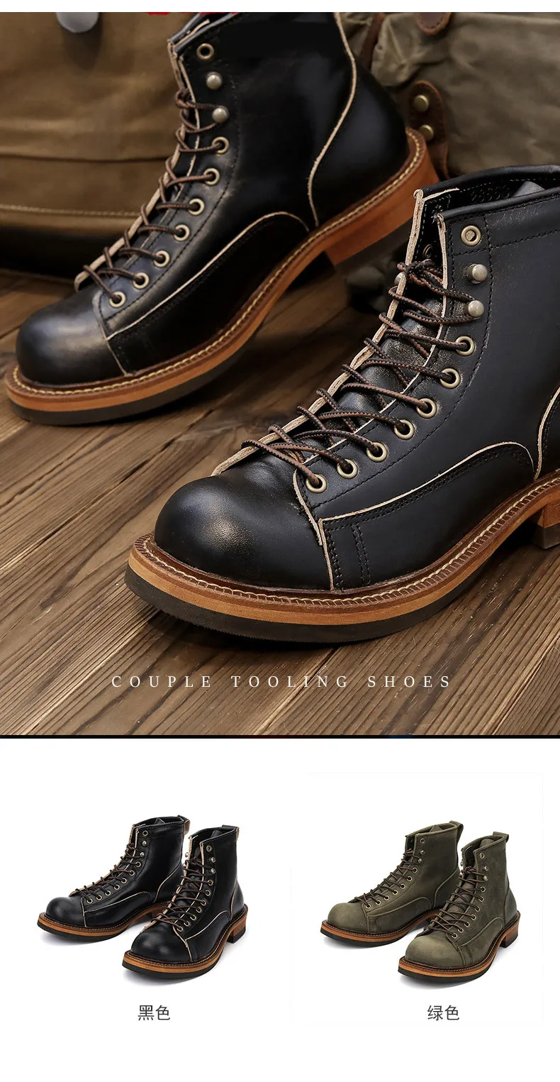 Estas botas son increíbles. Llevo mucho tiempo mirando botas y botas similares a este que cuestan entre 250 y 300 dólares. Estos son igualmente bonitos y no los quisiera tan altos como llevar botas de todos modos. Estas son la altura perfecta. Alguien dijo aquí en los comentarios que no son cuero auténtico. Eso no es cierto. Puedo oler fuertemente el cuero real mientras abres el paquete y obviamente puedes simplemente verlo y sentirlo. Son piel de vaca auténtica y parecen construcciones muy fuertes y muy bonitas. Los recomiendo encarecidamente. Normalmente uso un 11 1/2 en hombre y la talla 46 te queda genial.