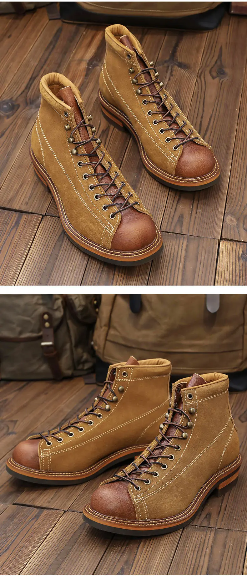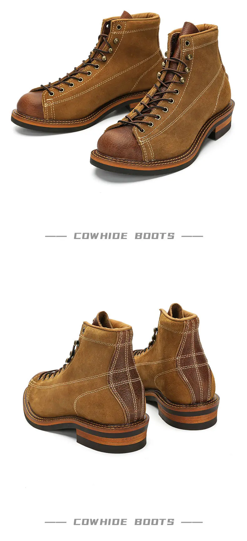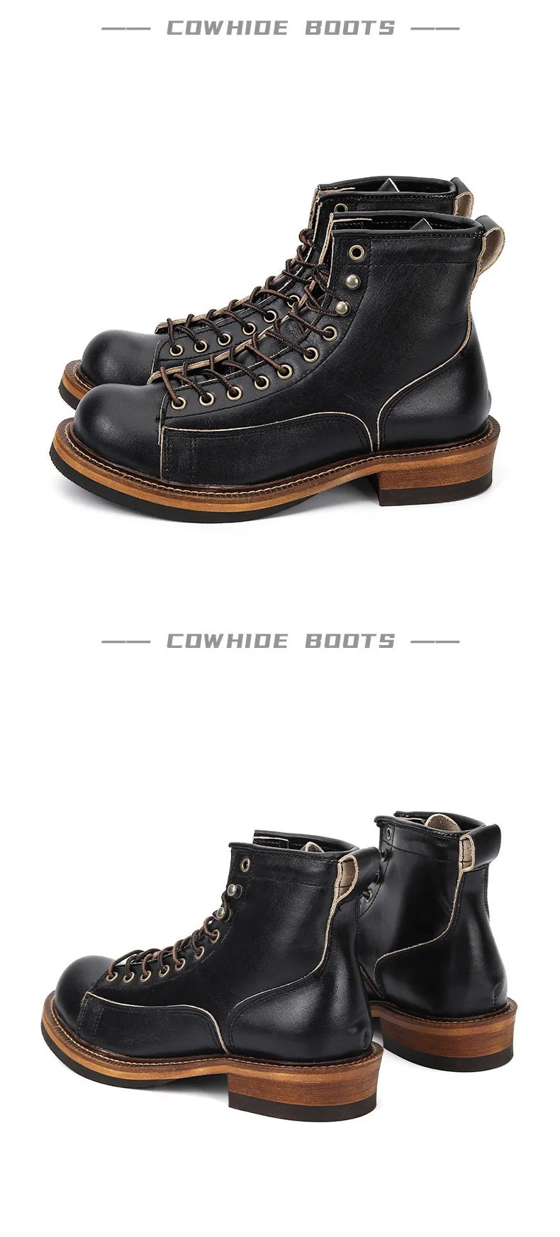 Estas botas son increíbles. Llevo mucho tiempo mirando botas y botas similares a este que cuestan entre 250 y 300 dólares. Estos son igualmente bonitos y no los quisiera tan altos como llevar botas de todos modos. Estas son la altura perfecta. Alguien dijo aquí en los comentarios que no son cuero auténtico. Eso no es cierto. Puedo oler fuertemente el cuero real mientras abres el paquete y obviamente puedes simplemente verlo y sentirlo. Son piel de vaca auténtica y parecen construcciones muy fuertes y muy bonitas. Los recomiendo encarecidamente. Normalmente uso un 11 1/2 en hombre y la talla 46 te queda genial.