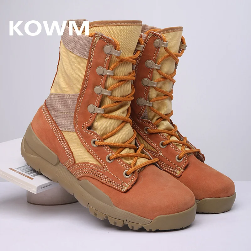 KOWM-zapatos de senderismo de cuero de vaca para hombre y mujer, botas impermeables de caza, zapatos tácticos de combate en el desierto, zapatillas tobilleras de caña alta