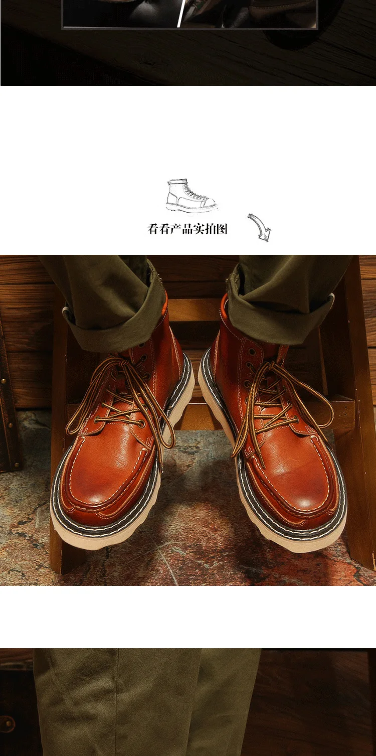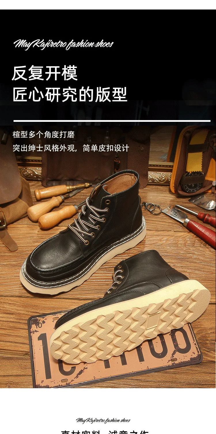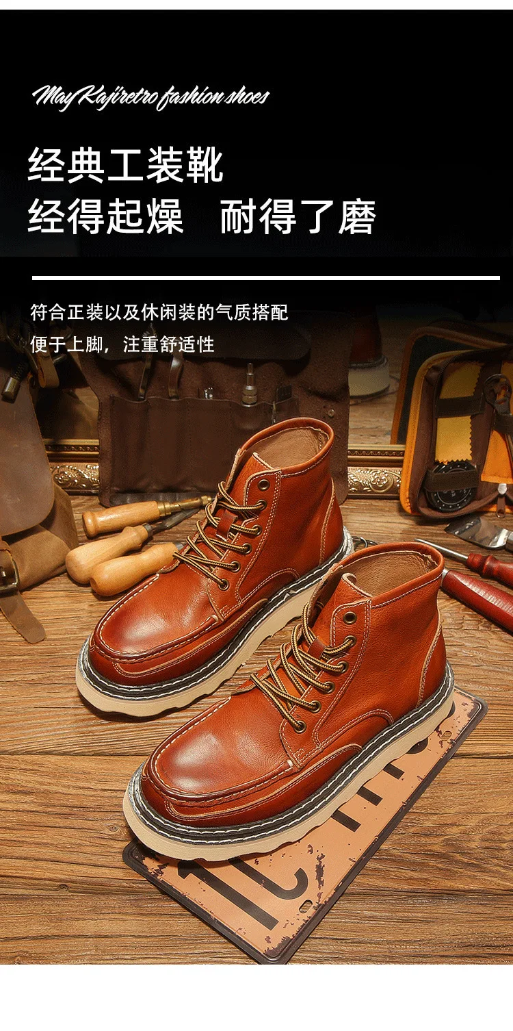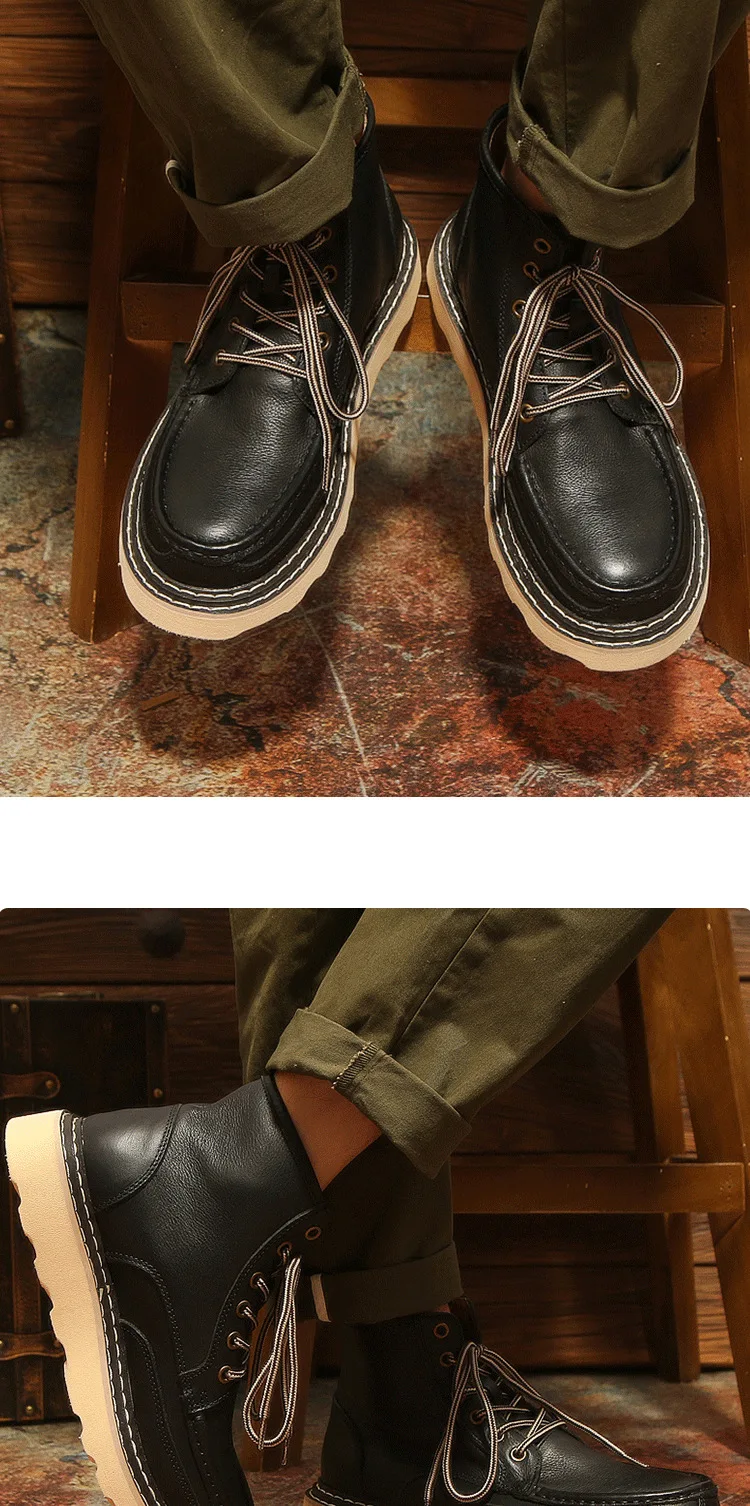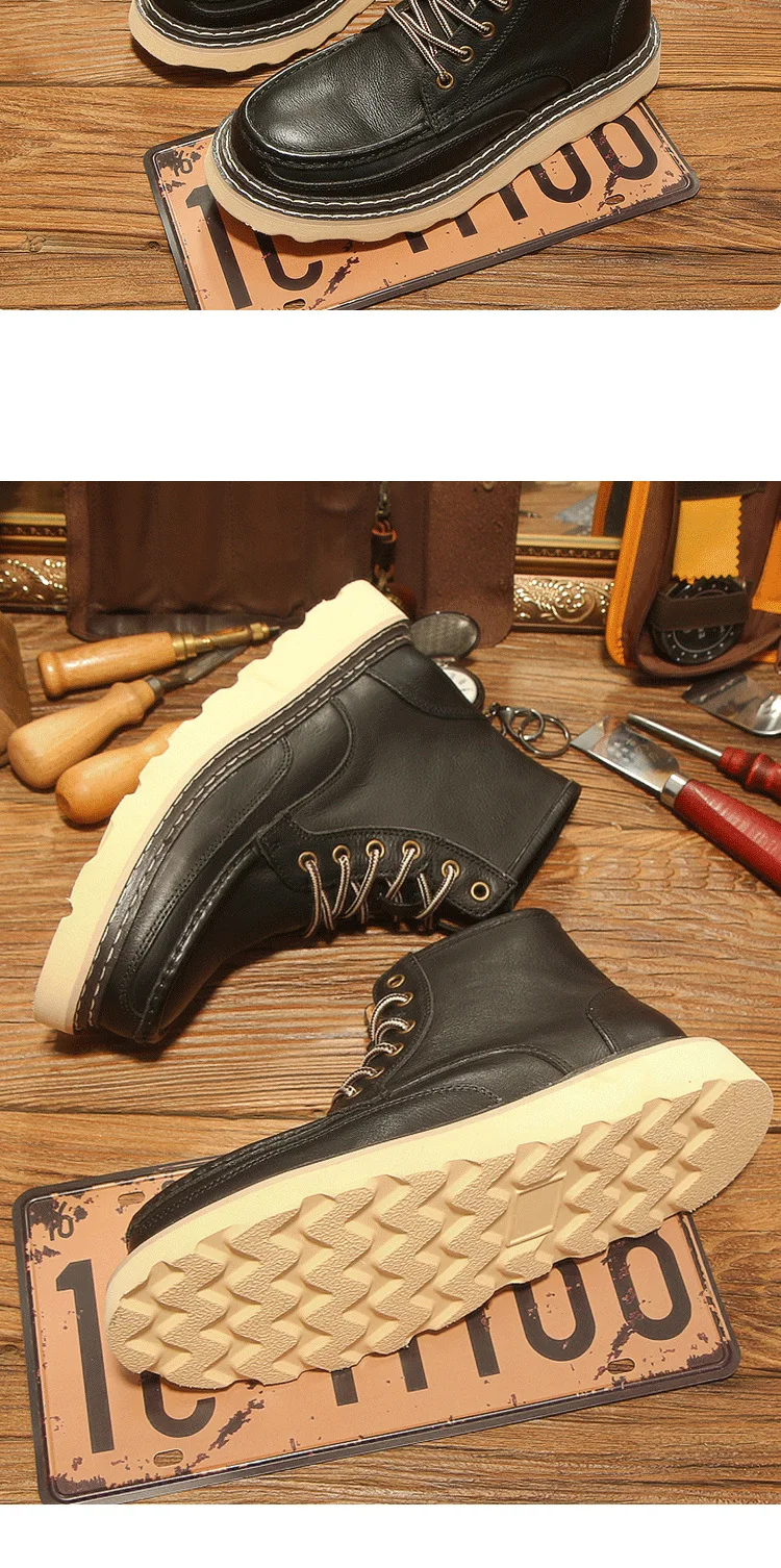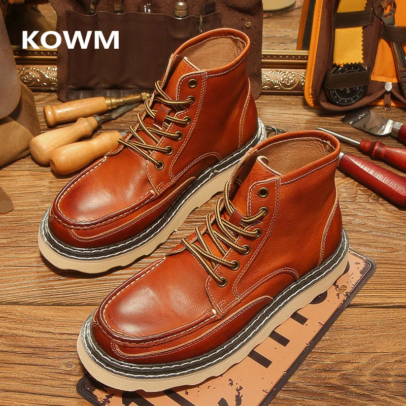 KOWM-zapatos de senderismo para hombre, botas para caminar, zapatos de trekking al tobillo de piel de vaca británica, zapatillas informales de suela gruesa, botas altas para motocicleta