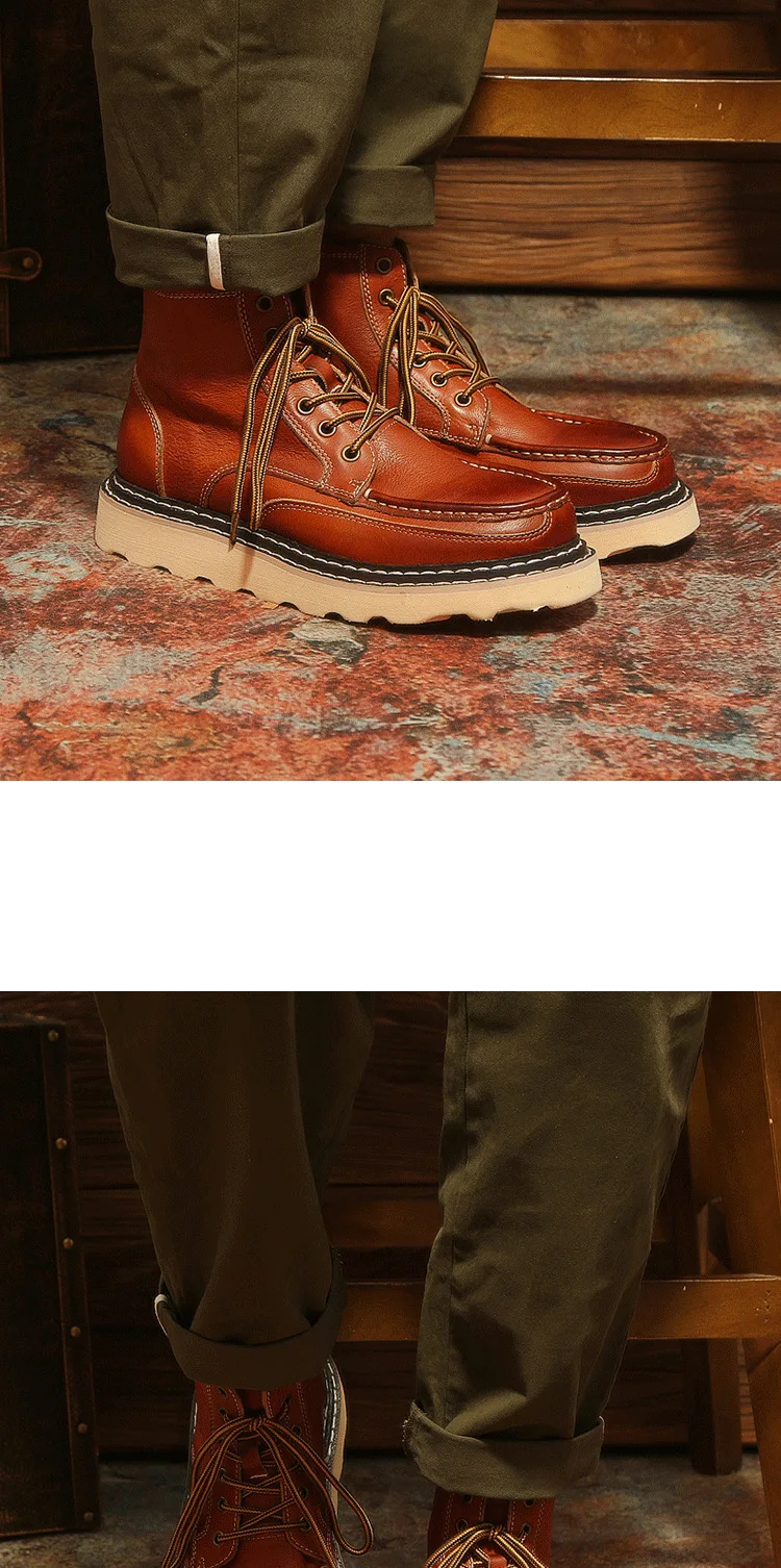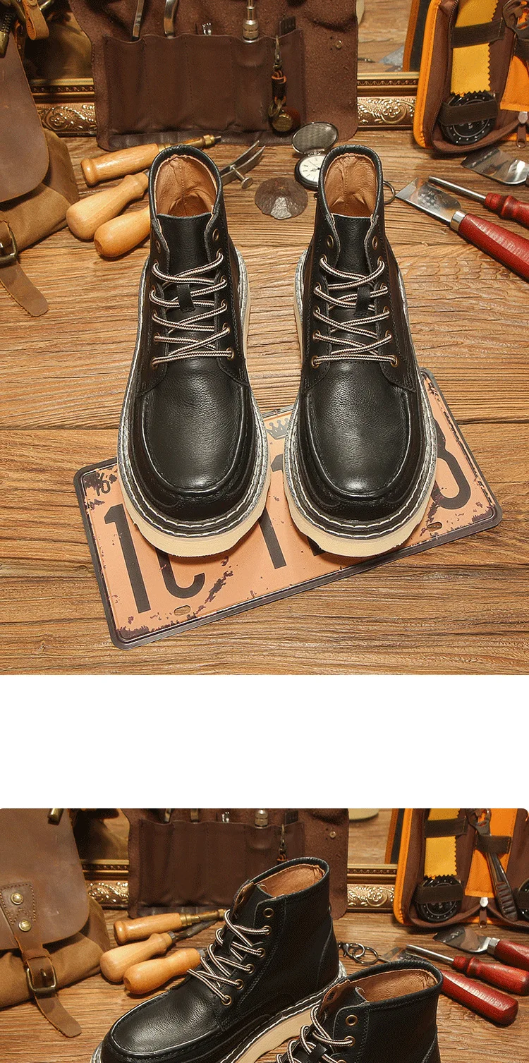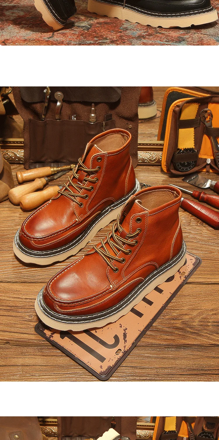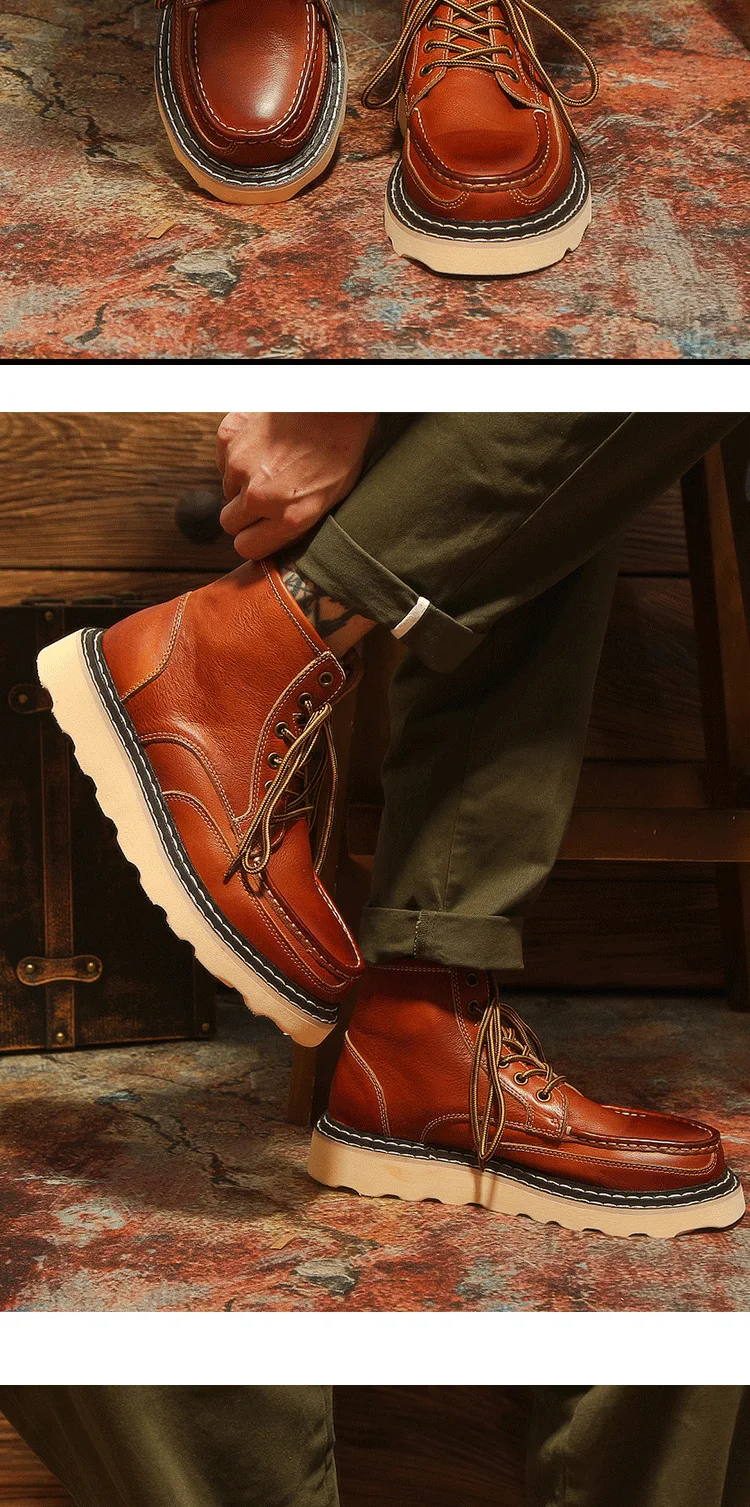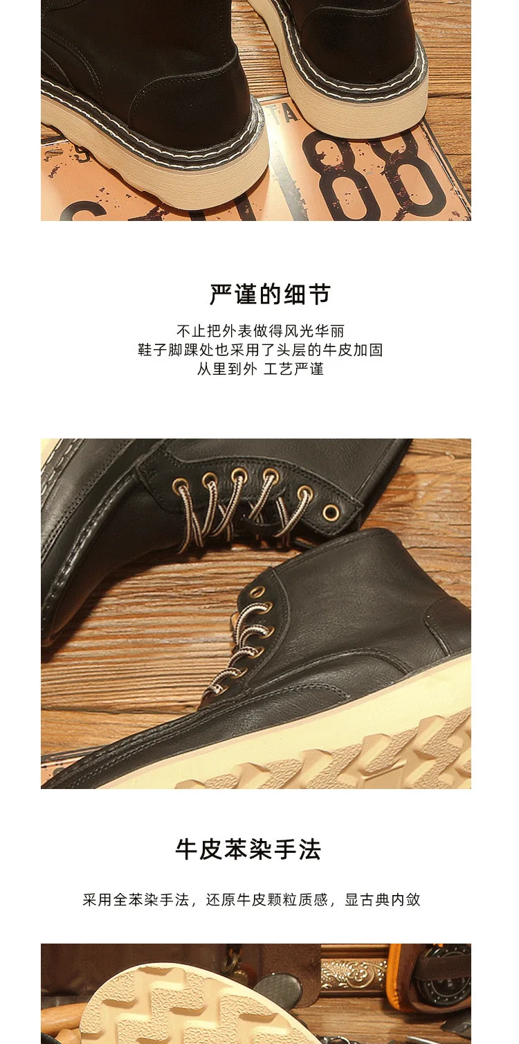 KOWM-zapatos de senderismo para hombre, botas para caminar, zapatos de trekking al tobillo de piel de vaca británica, zapatillas informales de suela gruesa, botas altas para motocicleta