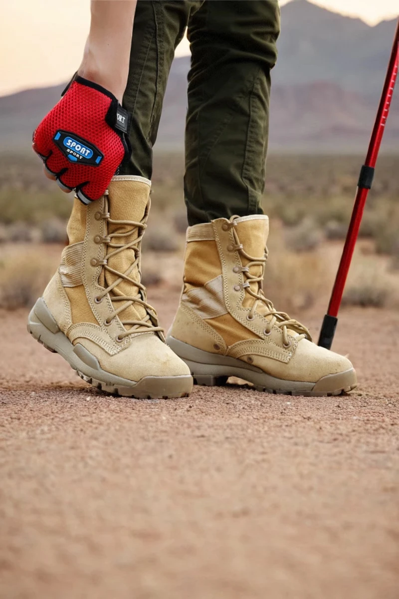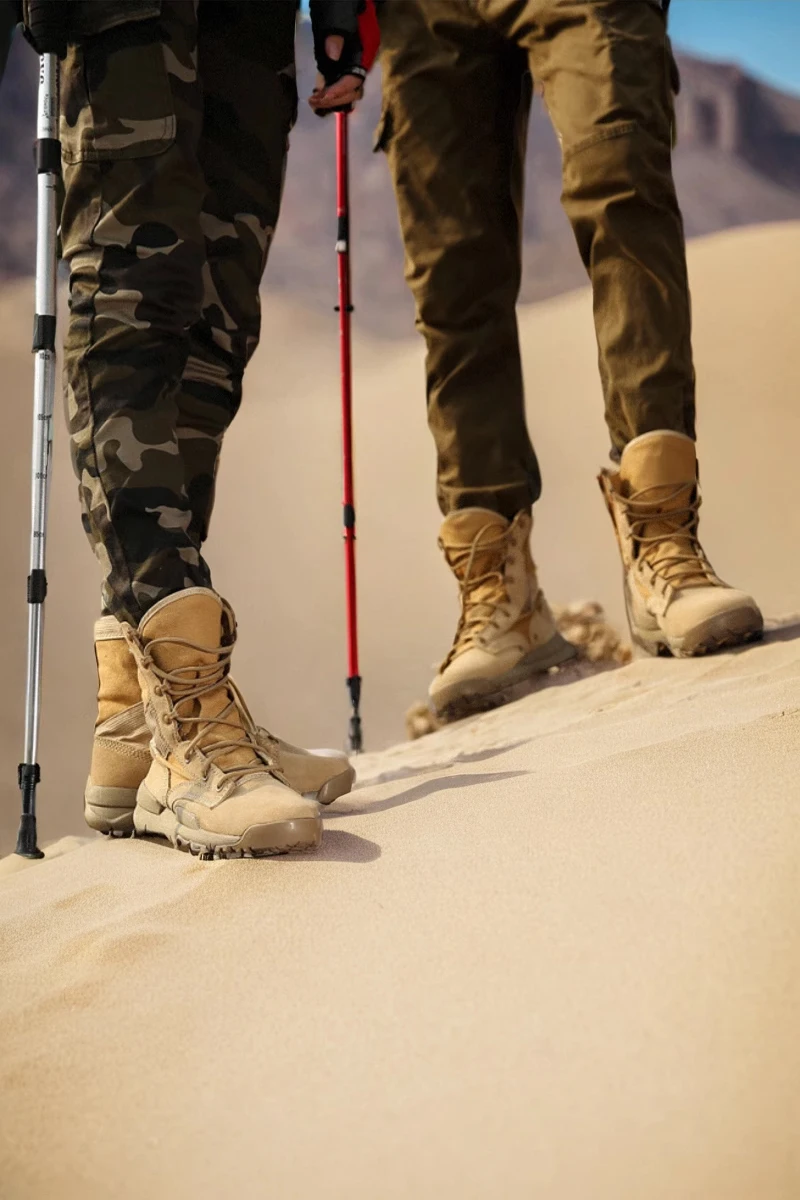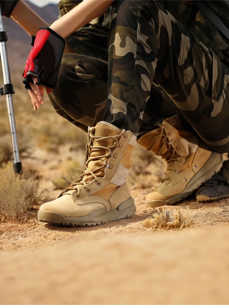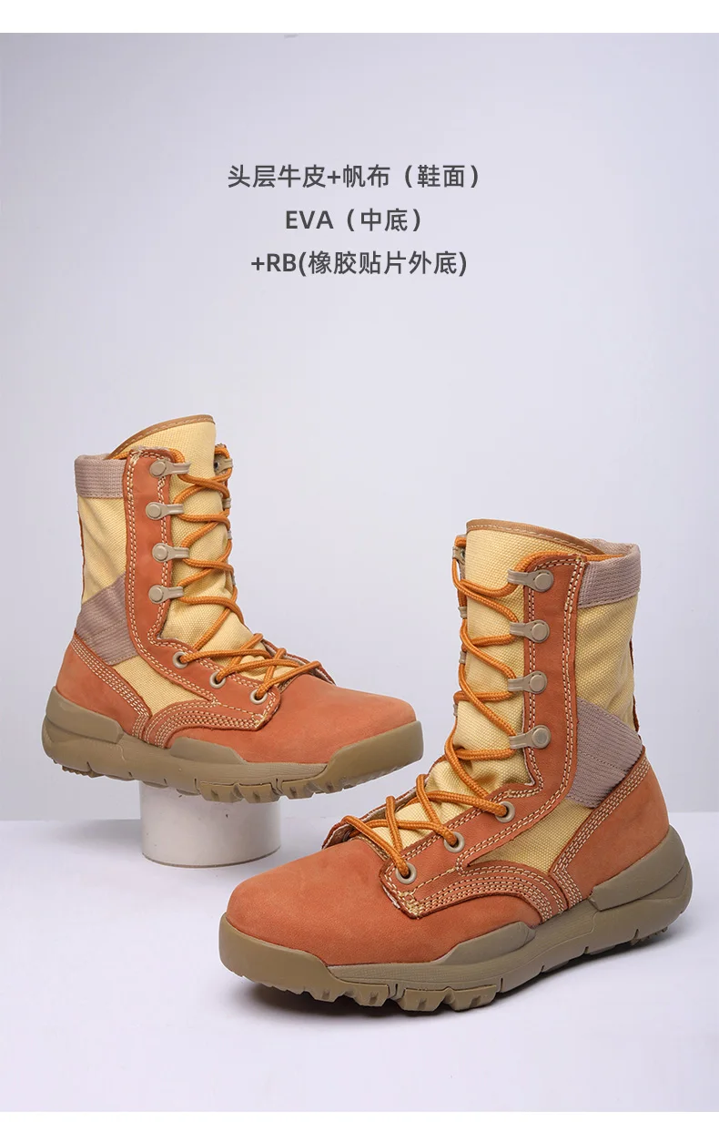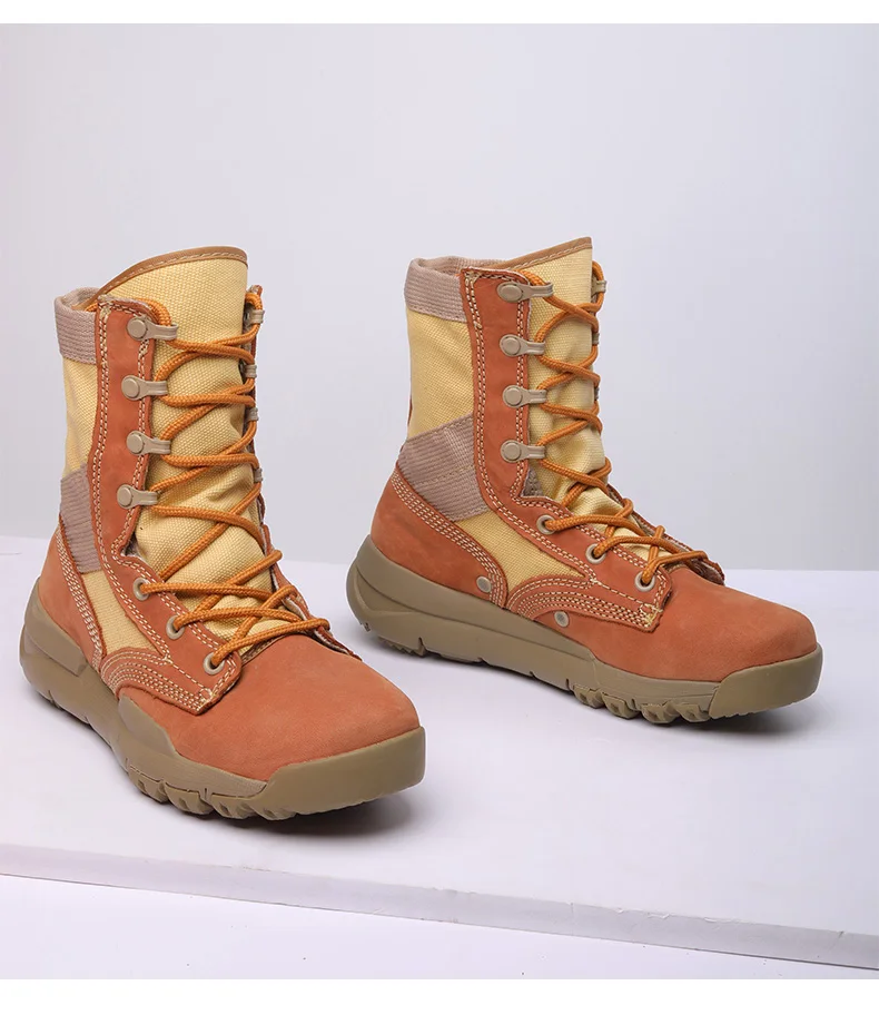 KOWM-zapatos de senderismo para hombre, botas impermeables, zapatos de caza, zapatos tácticos, zapatillas tobilleras de combate en el desierto, botas militares de piel de vaca