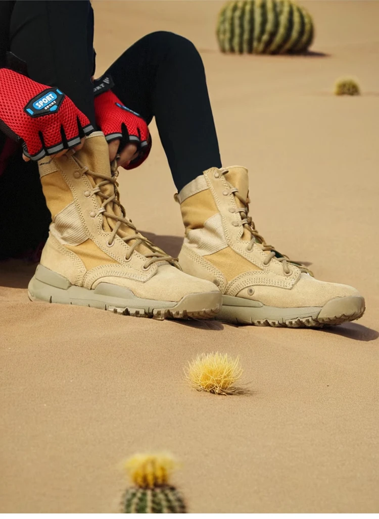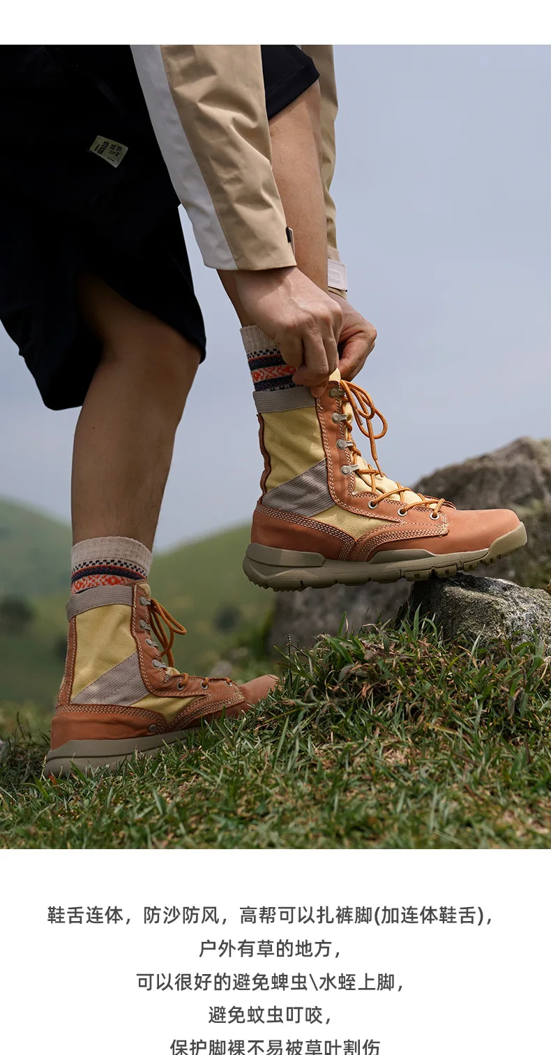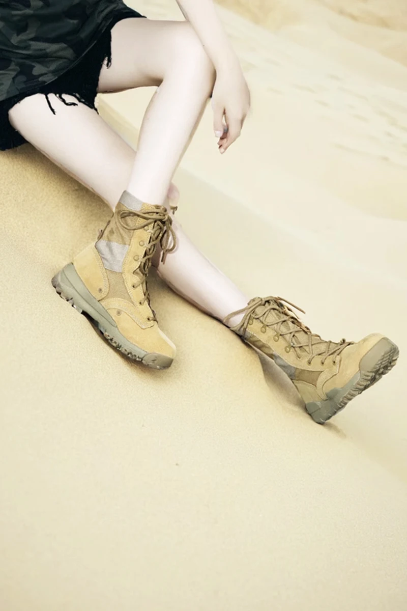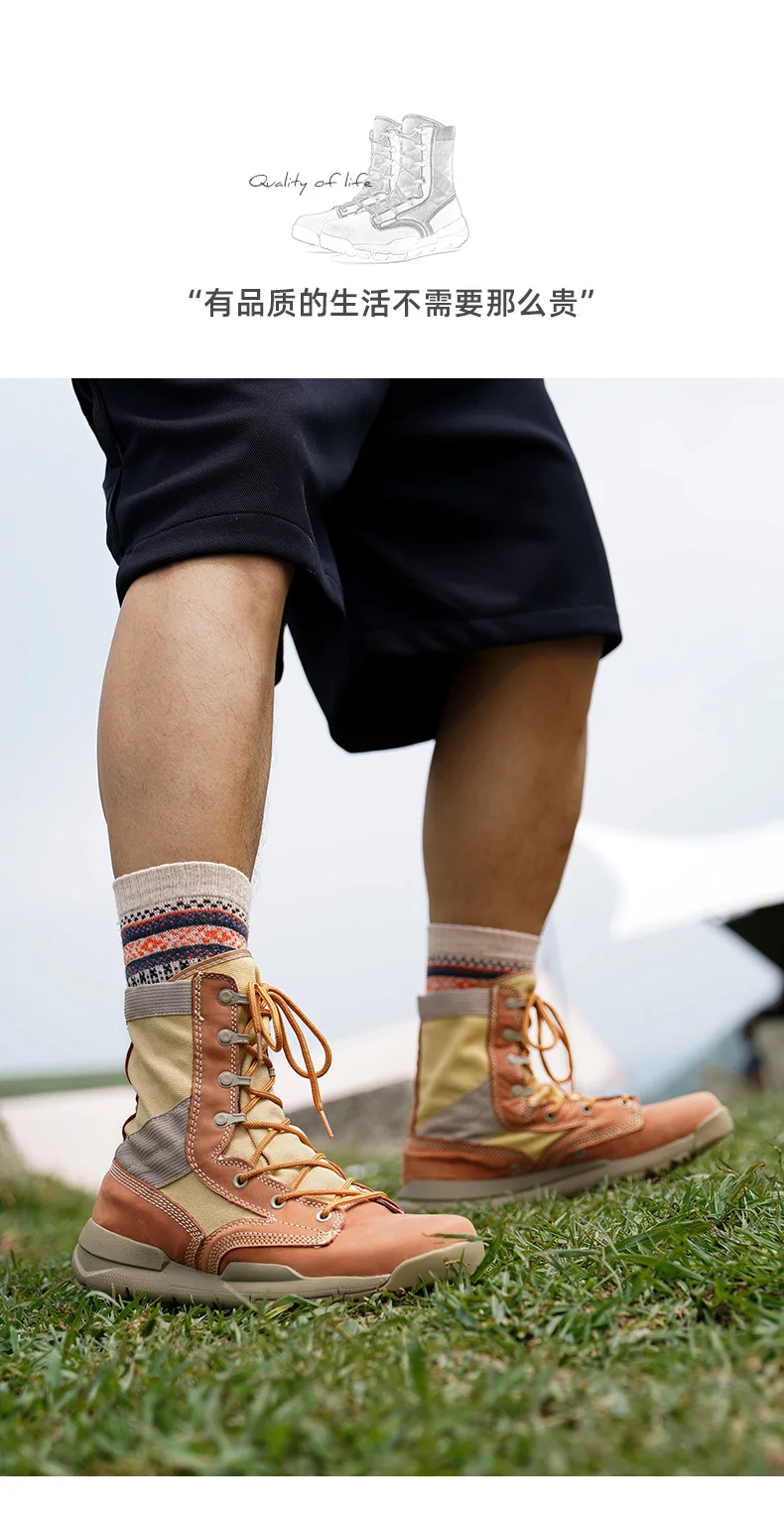 KOWM-zapatos de senderismo para hombre, botas impermeables, zapatos de caza, zapatos tácticos, zapatillas tobilleras de combate en el desierto, botas militares de piel de vaca